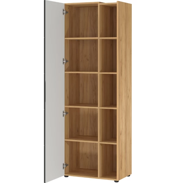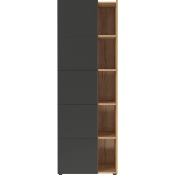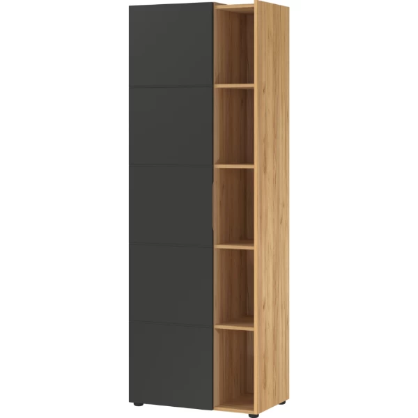 Dossierkast Oliveira 62x41x182cm uit spaanplaat met afwerking in eikdecor en antraciet. De kast kan ook in spiegelbeeld gemonteerd worden.