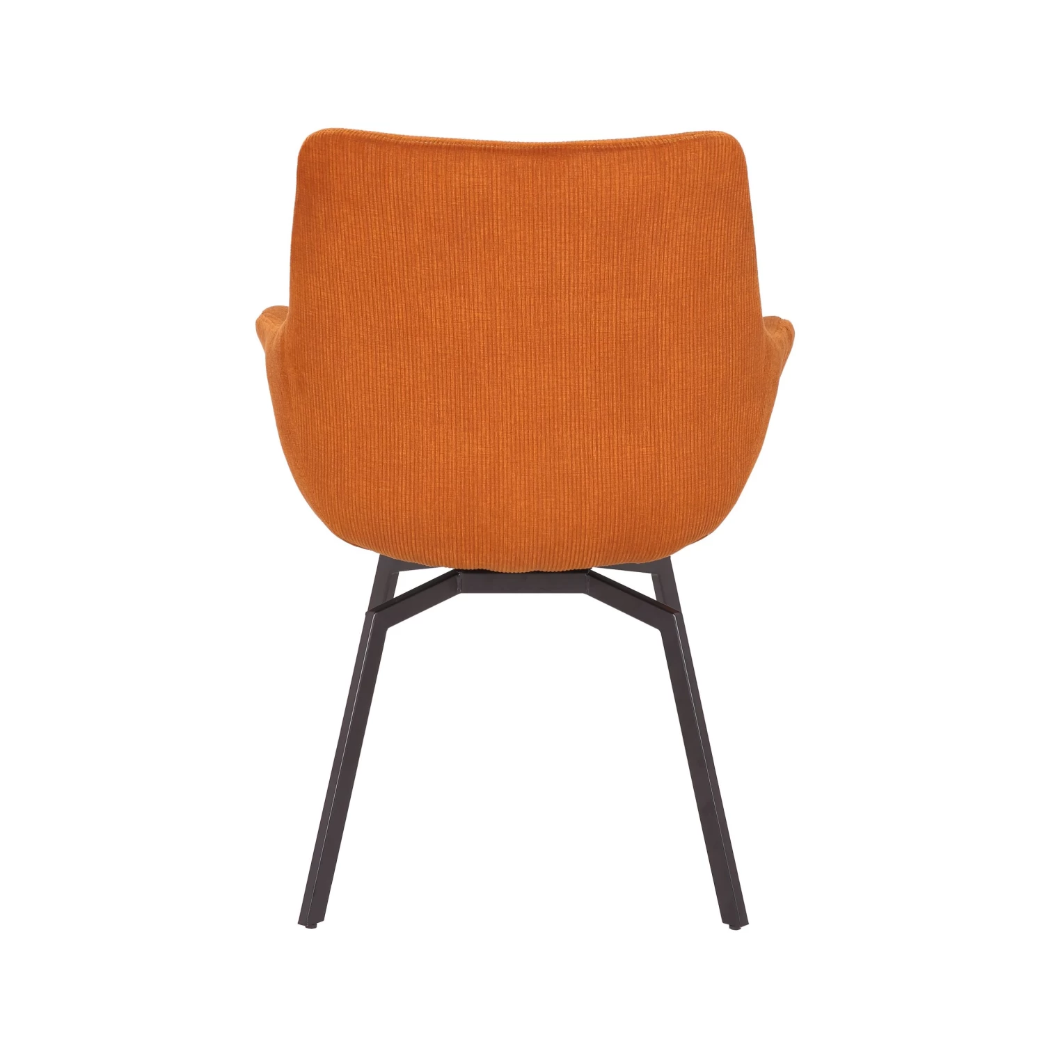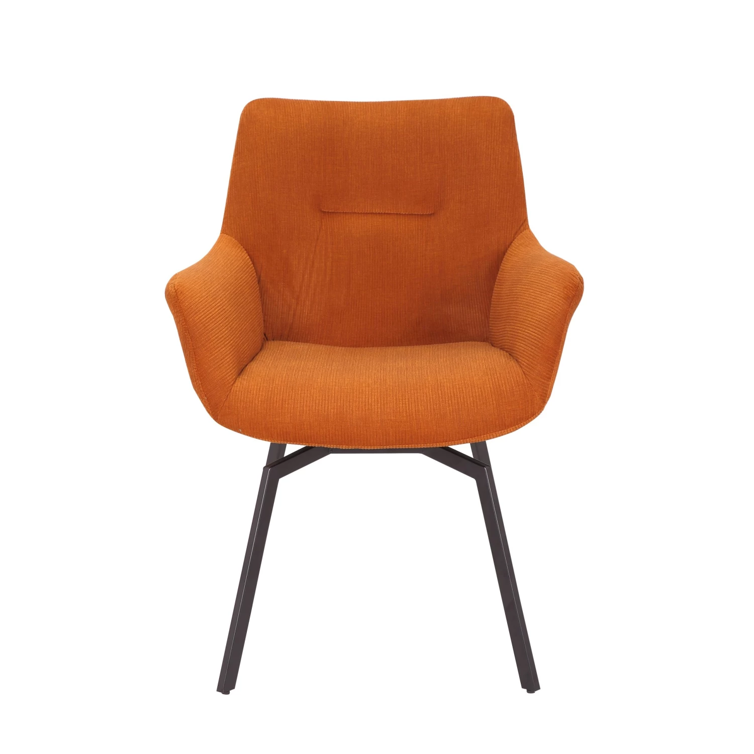 Draaistoel Modesta, bekleed met ribfluweel in de kleur oranje, met metalen poten.