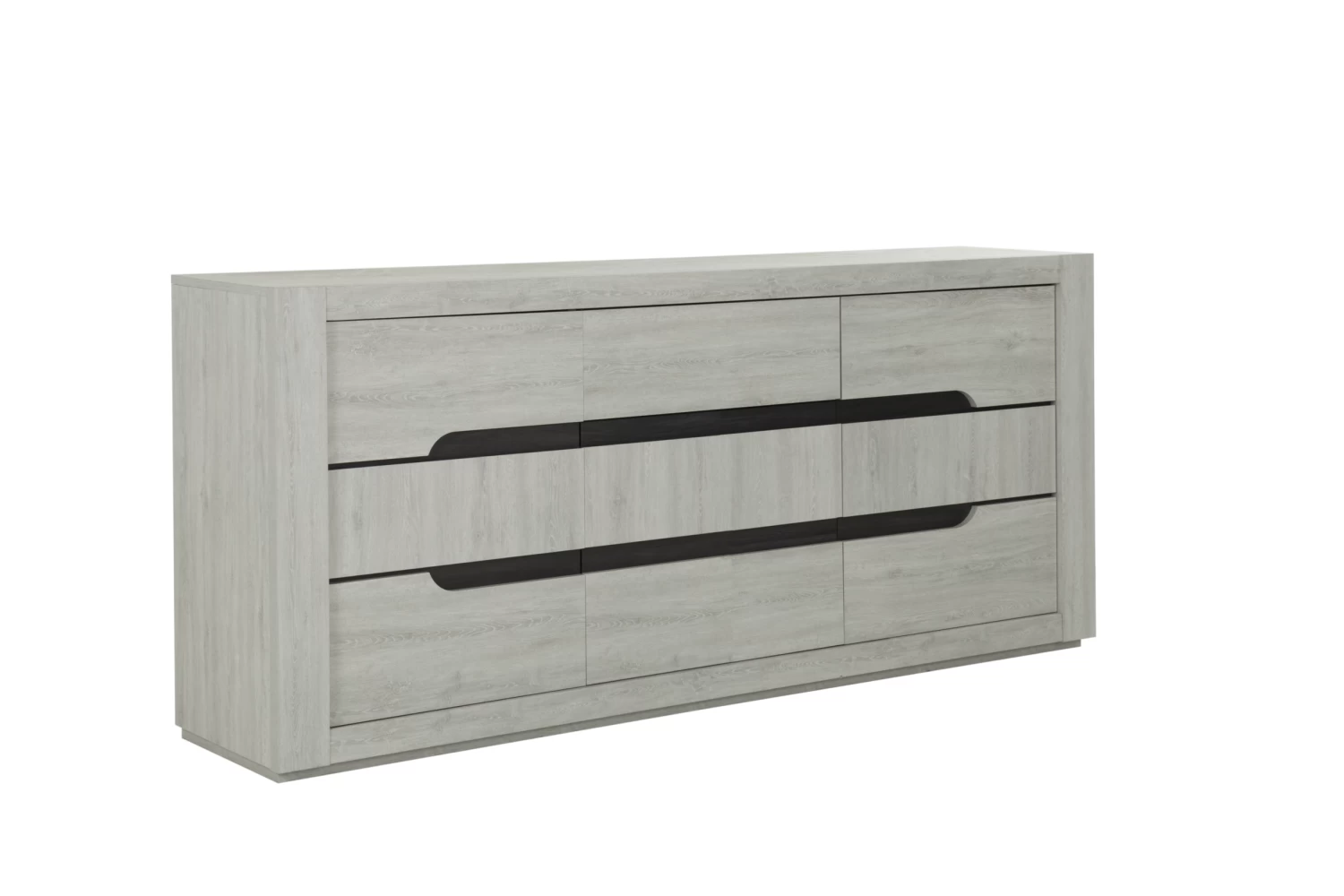 De Lanthe meubelen zijn vervaardigd uit spaanplaat en afgewerkt in laguna eik. Met hun lichtgrijze kleur geven ze een serene sfeer aan je woonkamer.