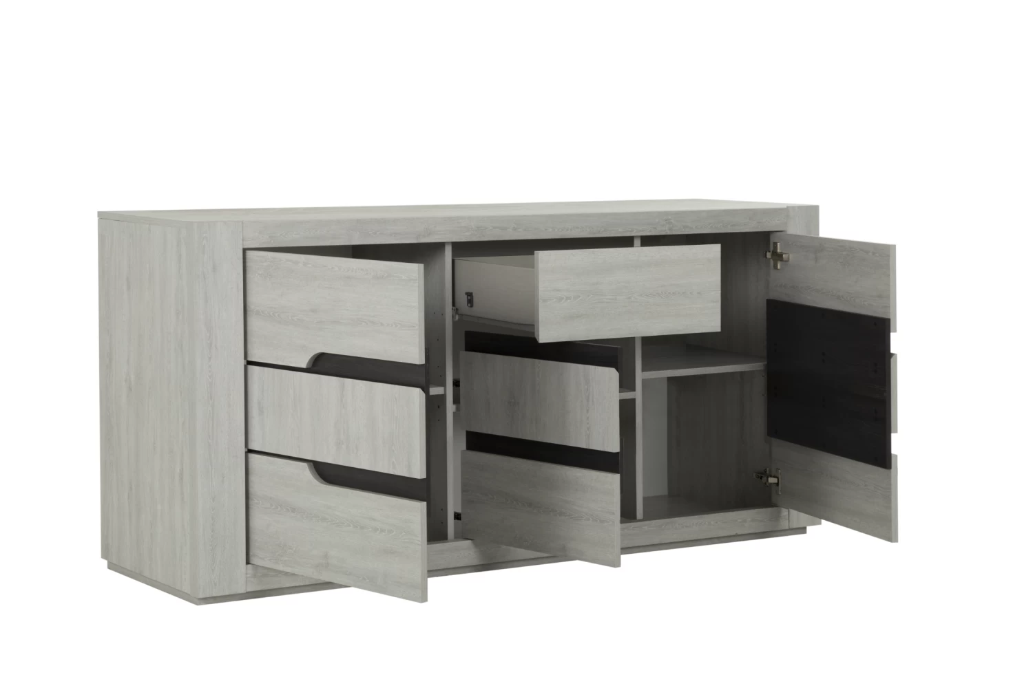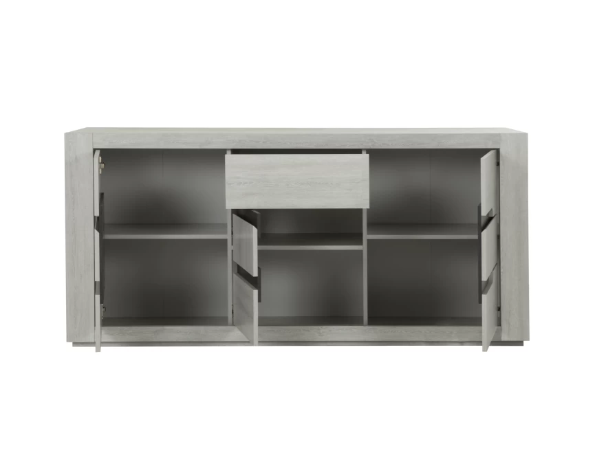 Dit Lanthe dressoir heeft 3 deuren en een lade uitgerust met Soft Close en biedt je heel wat opbergruimte. Achter elke deur bevindt zich een legplank.