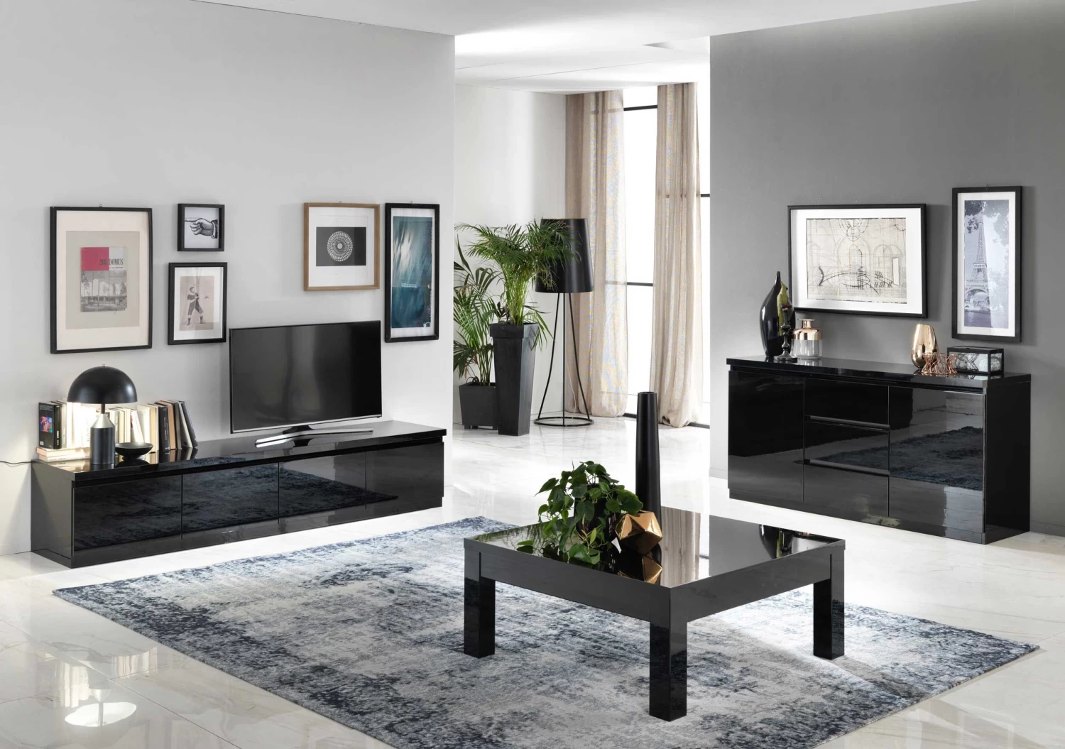 De Roma-collectie bestaat uit meubelen met hoogglans afwerking die een moderne uitstraling geven aan je woonkamer. De zwarte meubelen zijn gemaakt van ecologische spaanplaat en MDF.