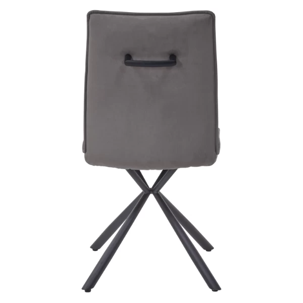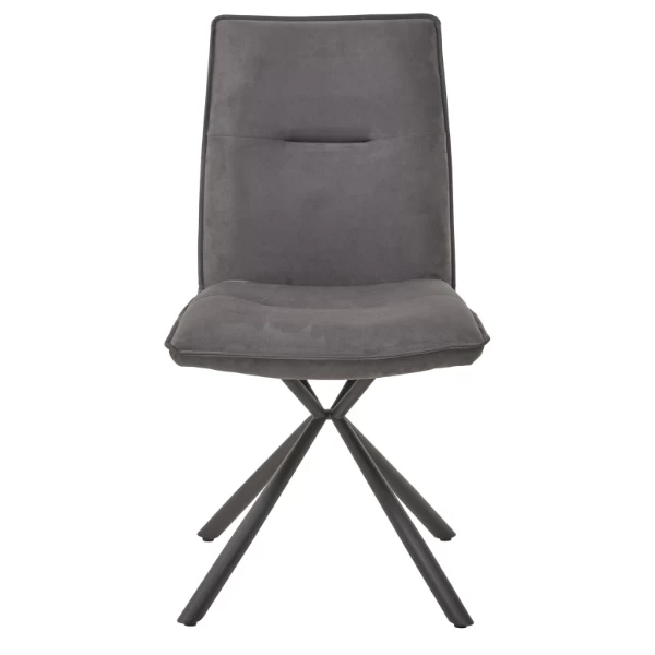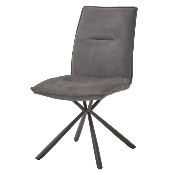 Eetkamerstoel Boone met zwarte metalen poten en bekleed in grijze stof.