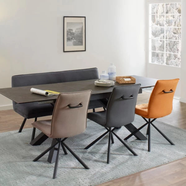 Ben je nog op zoek naar stoelen om je eetkamer te vervolledigen? Bekijk dan zeker onze stoelen Boone. Deze eetkamerstoel bestaat uit zwarte metalen poten en is bekleed met grijze stof. Het strakke ontwerp van de stoel geeft een moderne uitstraling aan je interieur, terwijl de zachte zitting zorgt voor een optimaal zitcomfort. Deze stoel bestaat ook in beige en oranje. Kies jouw favoriete kleur, of mix en match voor een speels resultaat.