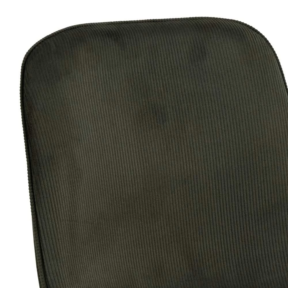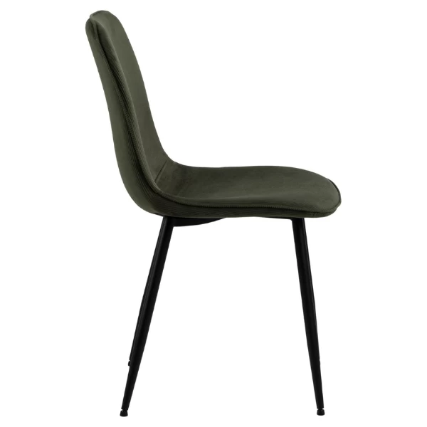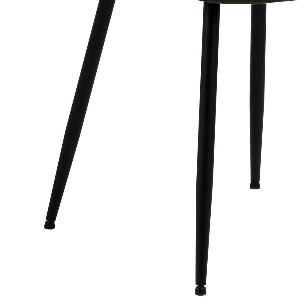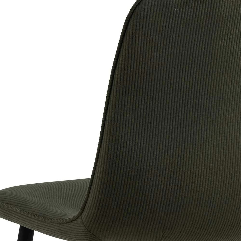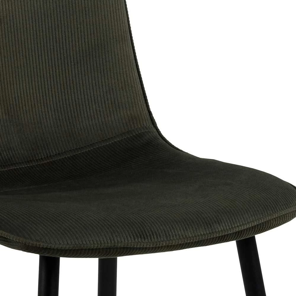 Eetkamerstoel Delmy met olijfgroene bekleding uit corduroy (ribfluweel) en poten uit zwart gepoedercoat metaal.
