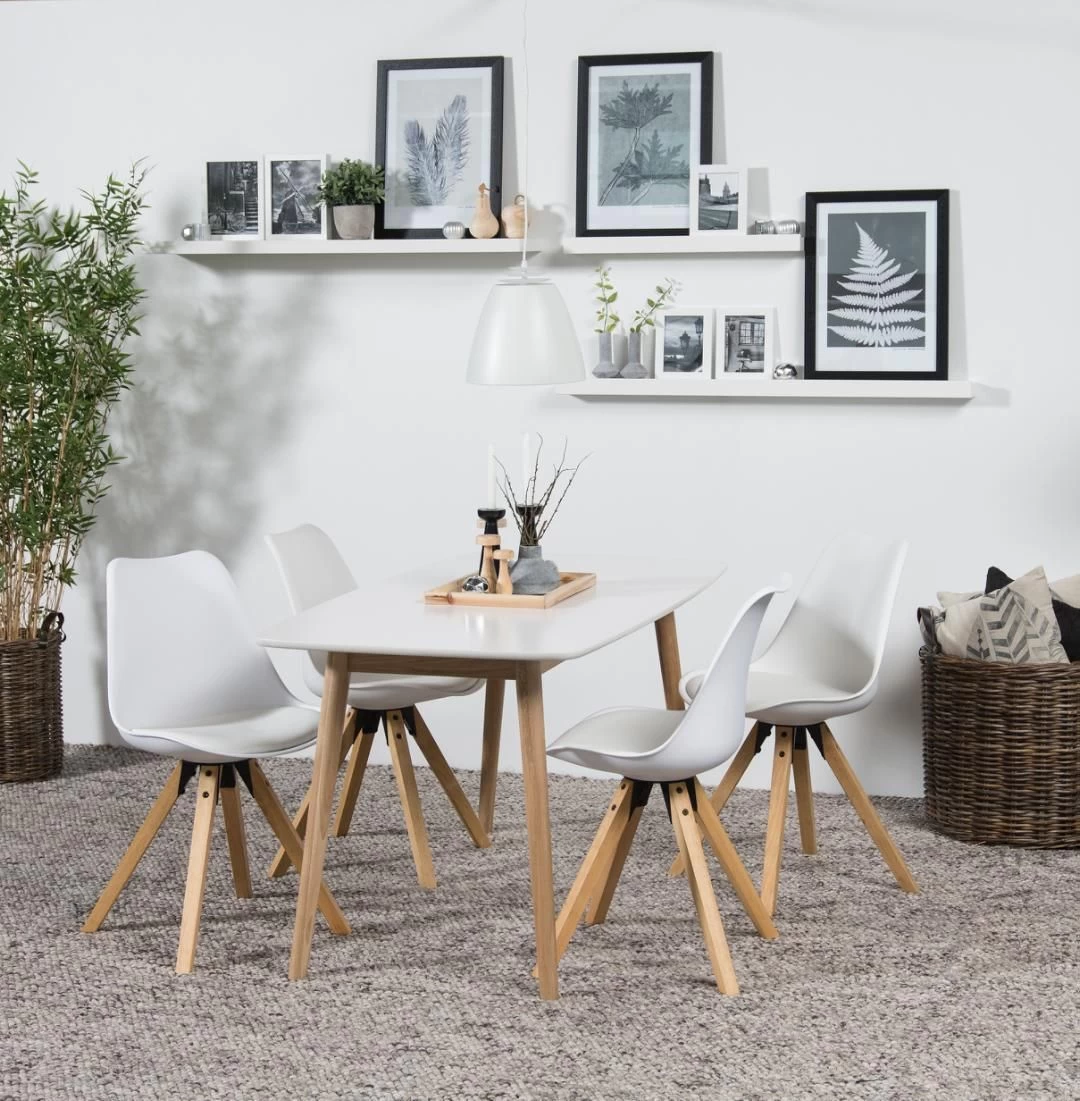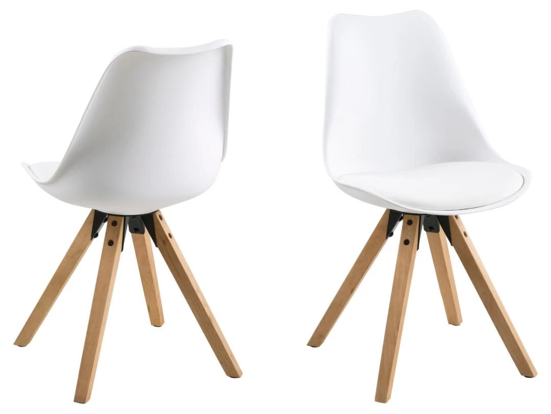 Vervolledig uw eetkamer met deze eetkamerstoelen in Scandinavische stijl. Simpel, maar comfortabel, zo kunnen deze stoelen het best omschreven worden. Eetkamerstoel Dima is voorzien van een stevige kuip. Hierdoor wordt de volledige rug ondersteund en heeft deze stoel een hoog zitcomfort. Daarnaast beschikt hij over een zitkussen uit kunstleder. Het onderstel is gemaakt uit gelakt rubberhout. Deze eetkamerstoelen zijn ook nog in andere kleuren verkrijgbaar in onze webshop.