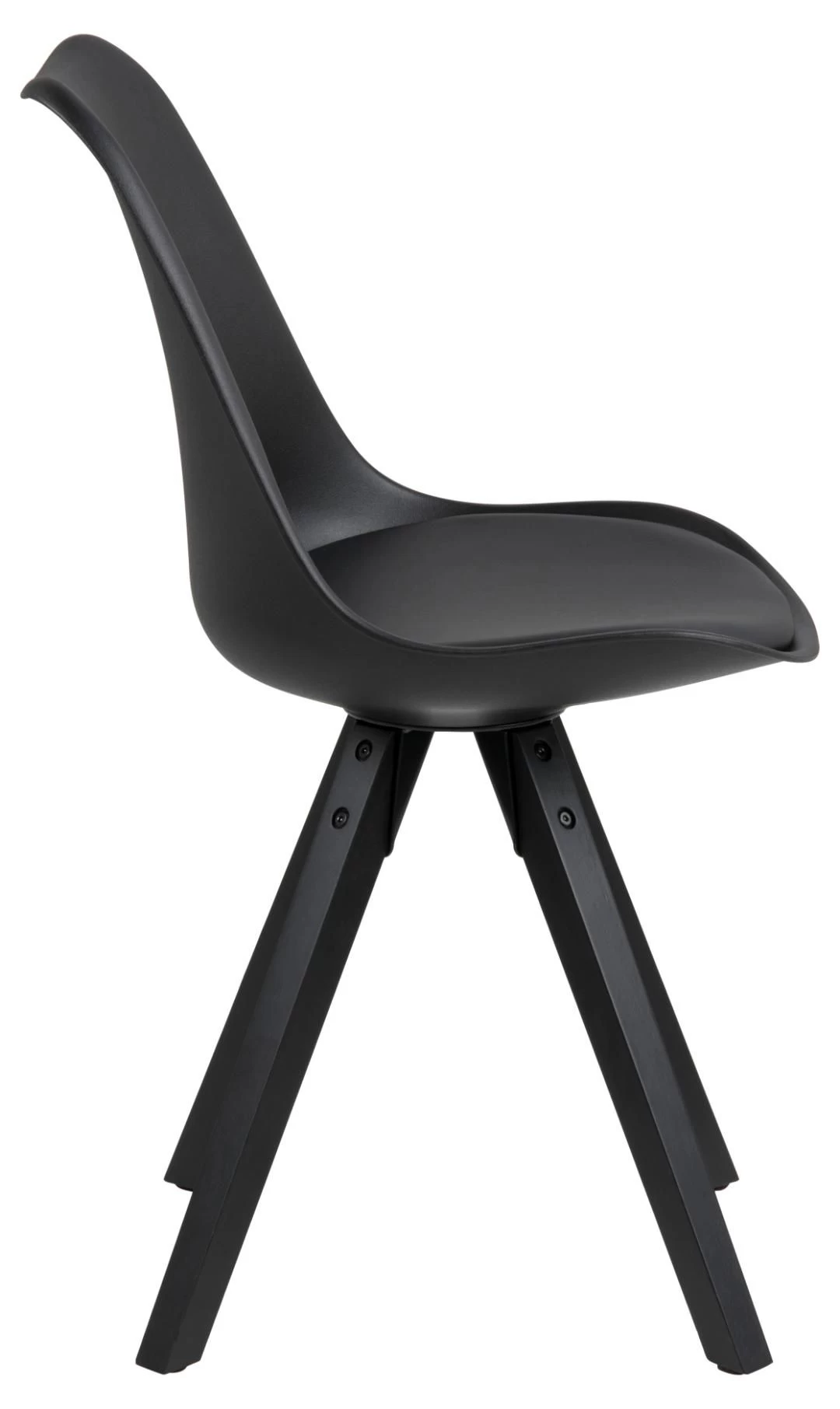 Vervolledig uw eetkamer met deze eetkamerstoelen in industriële stijl. Simpel, maar comfortabel, zo kunnen deze stoelen het best omschreven worden. Eetkamerstoel Dima is voorzien van een stevige kuip. Hierdoor wordt de volledige rug ondersteund en heeft deze stoel een hoog zitcomfort. Daarnaast beschikt hij over een zitkussen uit kunstleder. Het onderstel is gemaakt uit zwartgelakt rubberhout. Deze eetkamerstoelen zijn ook nog in andere kleuren verkrijgbaar in onze webshop.