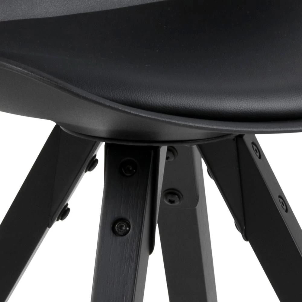 Eetkamerstoel Dima, gemaakt uit kunststof en met een zitkussen uit kunstleder. Het onderstel is gemaakt uit zwartgelakt rubberhout.