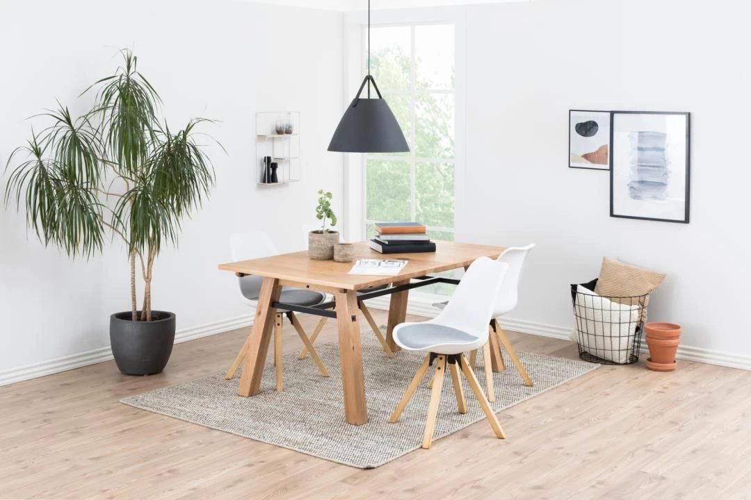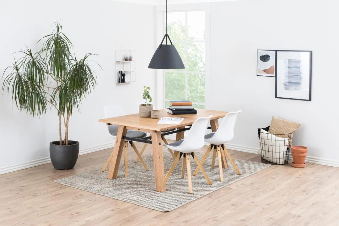 Vervolledig uw eetkamer met deze eetkamerstoelen in Scandinavische stijl. Simpel, maar comfortabel, zo kunnen deze stoelen het best omschreven worden. Eetkamerstoel Dima is voorzien van een stevige kuip. Hierdoor wordt de volledige rug ondersteund en heeft deze stoel een hoog zitcomfort. Daarnaast beschikt hij over een zitkussen uit Corsica-stof. Het onderstel is gemaakt uit gelakt rubberhout. Deze eetkamerstoelen zijn ook nog in andere kleuren verkrijgbaar in onze webshop.