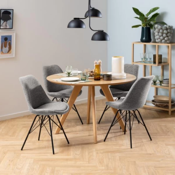Met de stoelen uit de Irma-collectie tilt u uw moderne eetkamer naar een hoger niveau. Enerzijds door hun lichtgrijze bekleding uit stof die een hoog zitcomfort garandeert, anderzijds door hun stevige poten uit zwart gepoedercoat materiaal. Deze poten zijn bovendien met elkaar verbonden door middel van verschillende metalen kruisen. Hierdoor hebben de stoelen net dat beetje extra. Deze stoelen worden verkocht per 2 en zijn ook verkrijgbaar in het beige.