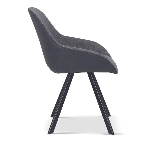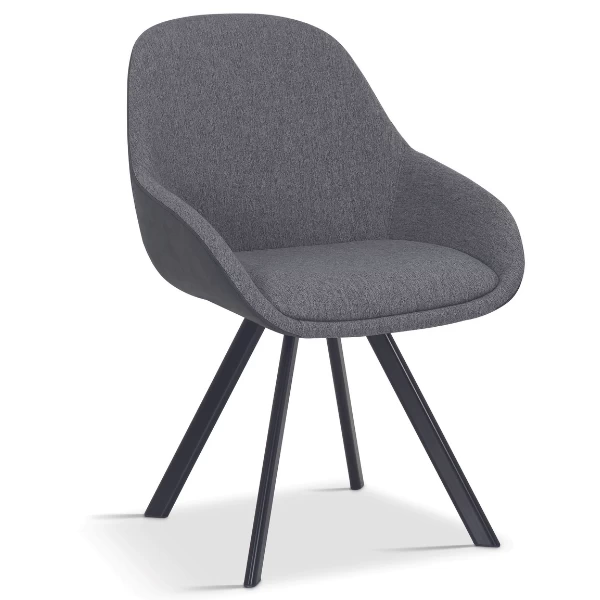 Eetkamerstoel Liese met polyester bekleding en donkergrijze kunstlederen rug heeft zwarte metalen poten.