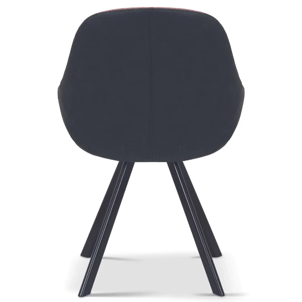 Eetkamerstoel Liese met polyester bekleding en donkergrijze kunstlederen rug heeft zwarte metalen poten.