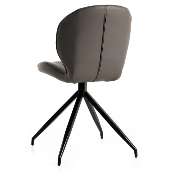 Eetkamerstoel Lori met zwarte metalen poten en een bekleding in taupe kunstleer.Â