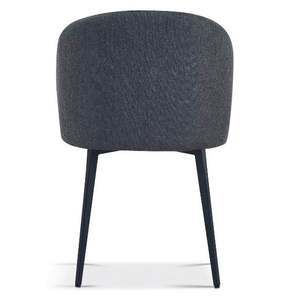 Eetkamerstoel Tilly heeft een stoffen bekleding en zwarte metalen poten.