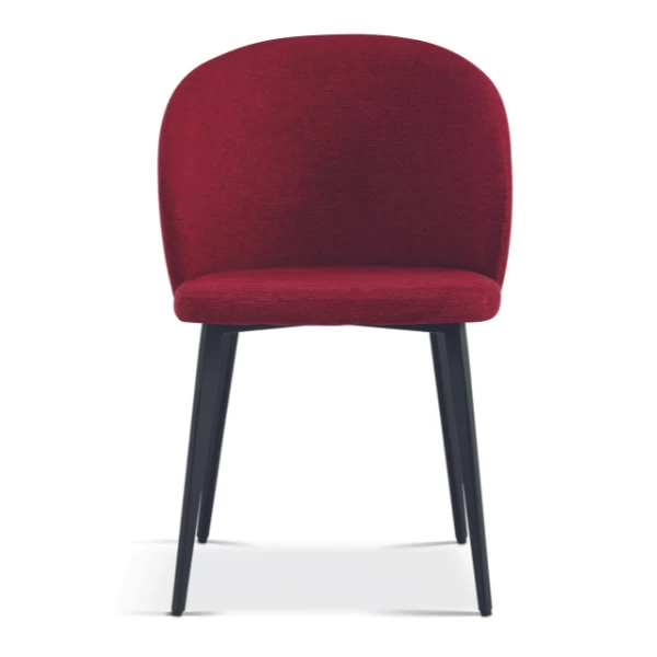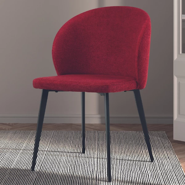 Eetkamerstoel Tilly heeft een stoffen bekleding en zwarte metalen poten.