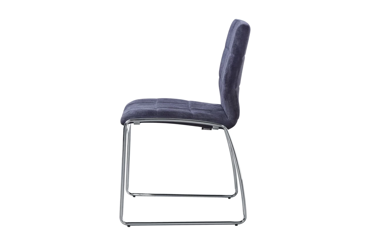 Grijze Tine-stoel met PU-bekleding en verchroomd onderstel.