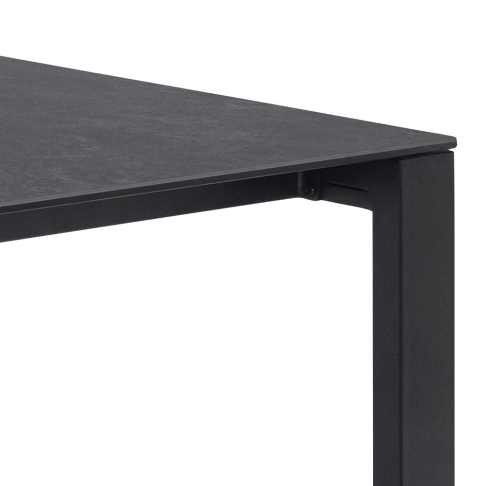 Eettafel Brentford beschikt over een zwart tafelblad uit keramiek en zwart gepoedercoate poten uit metaal. Een keramisch tafelblad is de laatste jaren enorm in opmars en dat is niet zonder reden! Het heeft namelijk het voordeel dat het krasvast, vormvast en hittebestendig is. Je hebt dus geen onderzetters meer nodig. Daarnaast is een keramisch tafelblad makkelijk schoon te maken: etensresten kun je makkelijk met een vochtige doek verwijderen.