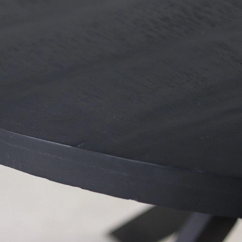 De ronde eettafel Geraldton is gemaakt van mangohout en metaal. De zwarte kleur geeft de tafel een moderne uitstraling. Het dikke blad van 4,5 cm heeft een ruwe afwerking wat zorgt voor een stoere look. De tafel biedt plaats aan 3 à 4 personen.