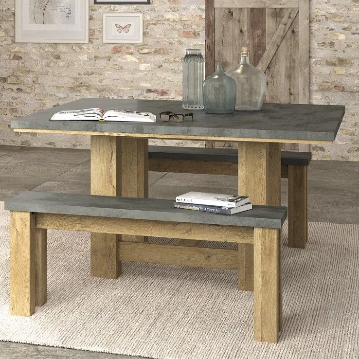 De Louane-collectie is geïnspireerd door de industriële stijl. De collectie onderscheidt zich van andere meubelen dankzij de combinatie van beton decor met lichte eik decor. Deze meubelen zijn gemaakt uit spaanplaat met een melamine afwerking en hebben een robuuste uitstraling.Â