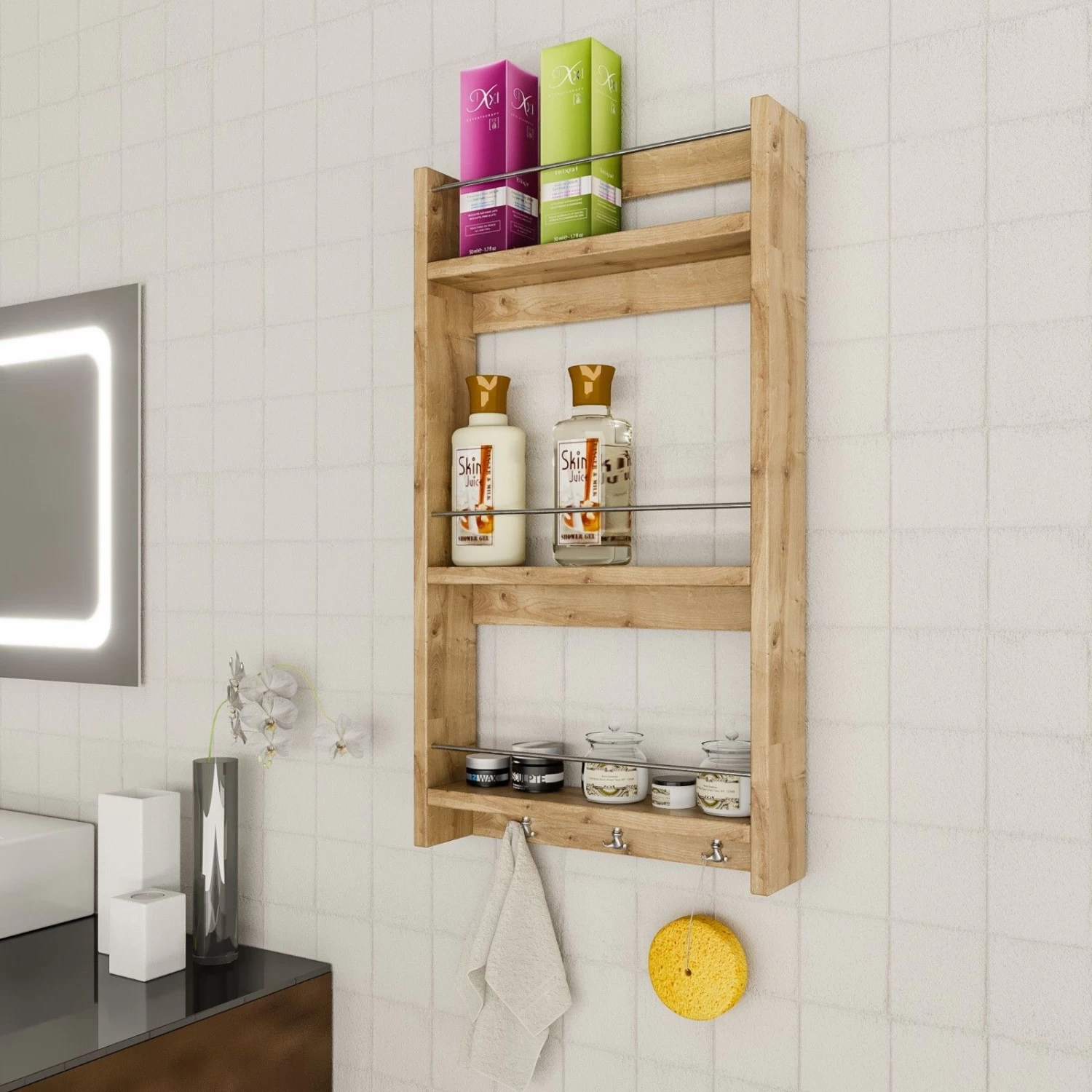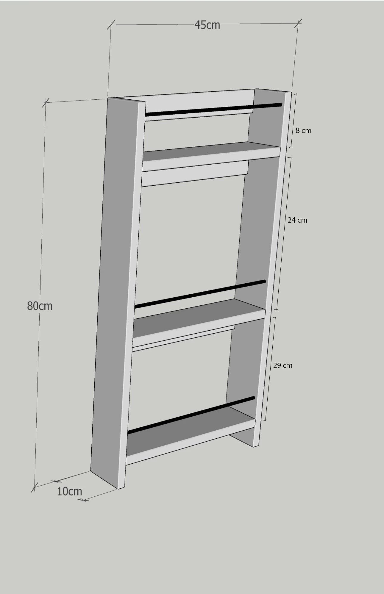 wandplank is gemaakt van 100% gemelamineerd spaanplaat. Het heeft een dikte van 18 mm, een breedte van 45 cm, een hoogte van 80 cm en een diepte van 10 cm. Met zijn vele planken kan hij gemakkelijk aan de muur worden bevestigd en wordt hij geleverd in een aantrekkelijke eiken kleur.