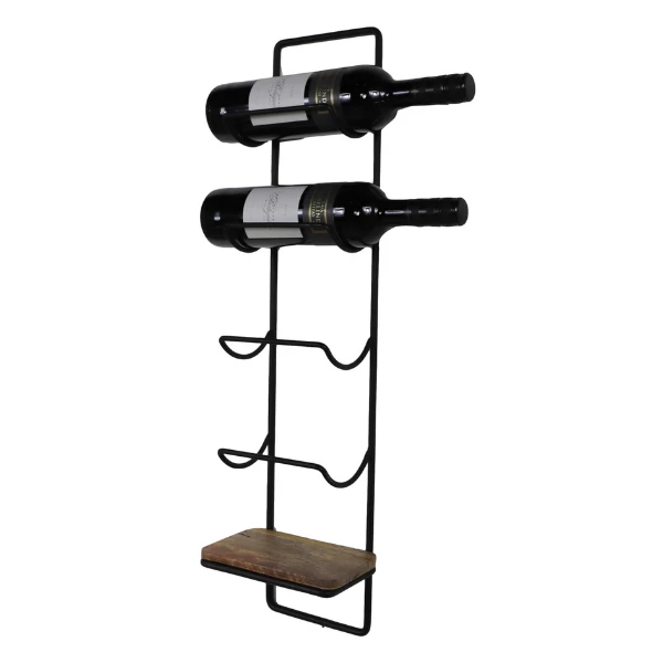 Pronk met je wijncollectie met dit wijnrek Cabernet. De combinatie van mangohout en zwart metaal zorgt voor een stoere, maar warme uitstraling. Het rek beschikt over een extra legplankje om bijvoorbeeld een flesopener te plaatsen. Installeer het rek in de keuken of voorraadkamer, of hang deze blikvanger in je woonkamer. Dit wijnrek heeft plaats voor 4 flessen.