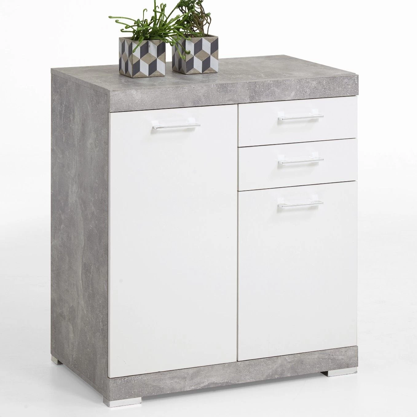 FMD Commode Cristal 2 Deuren En 2 Laden 80x90x50 – Beton/hoogglans Wit