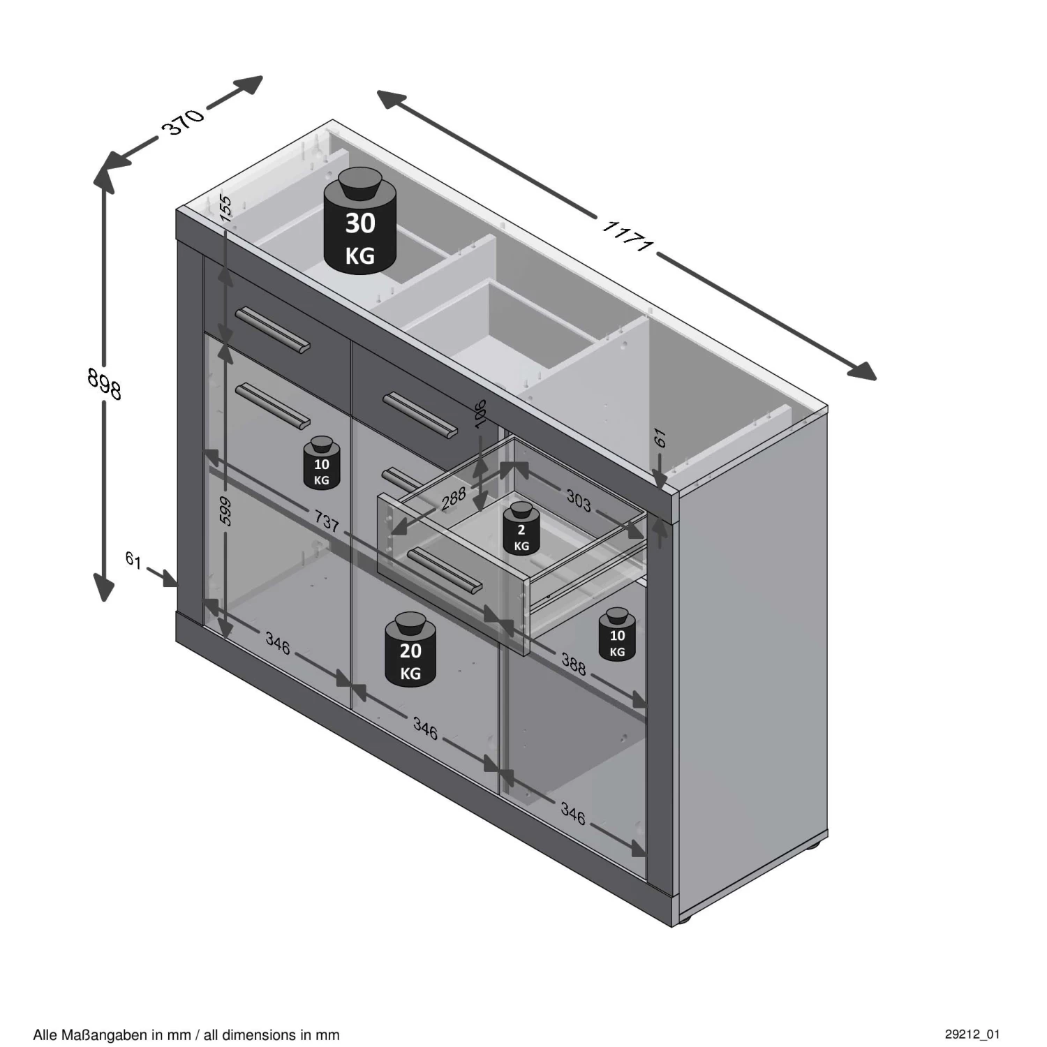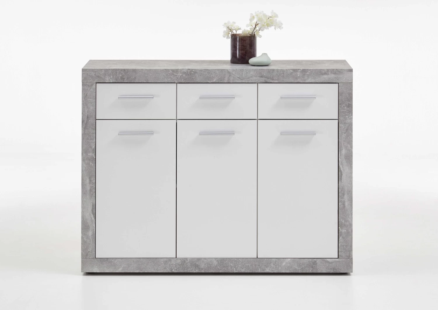 FMD Commode Turbo Met 3 Deuren & 3 Laden – Beton/hoogglans Wit