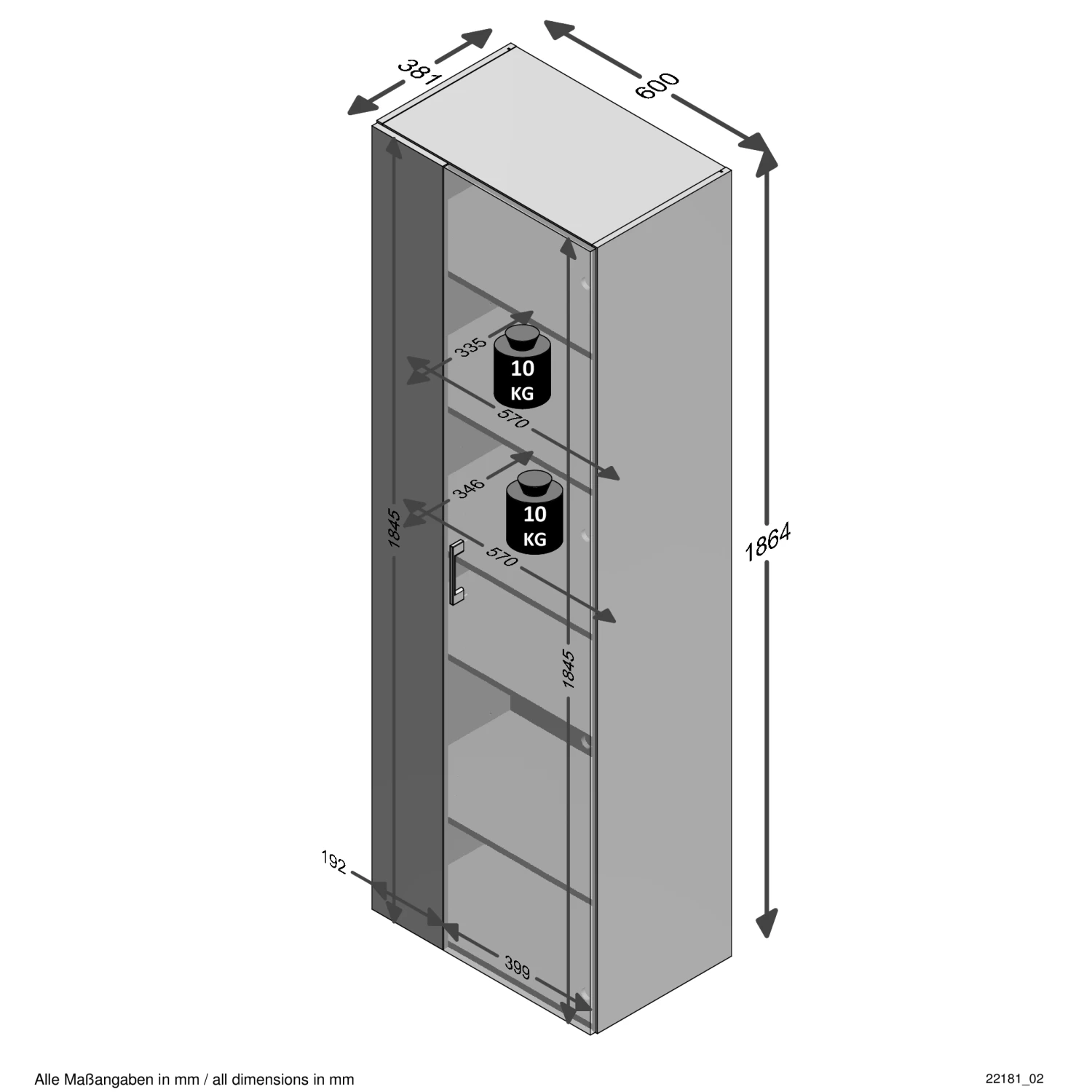 Kleerkast Nala met 2 deuren en 6 opbergvakken, vervaardigd uit spaanplaat.