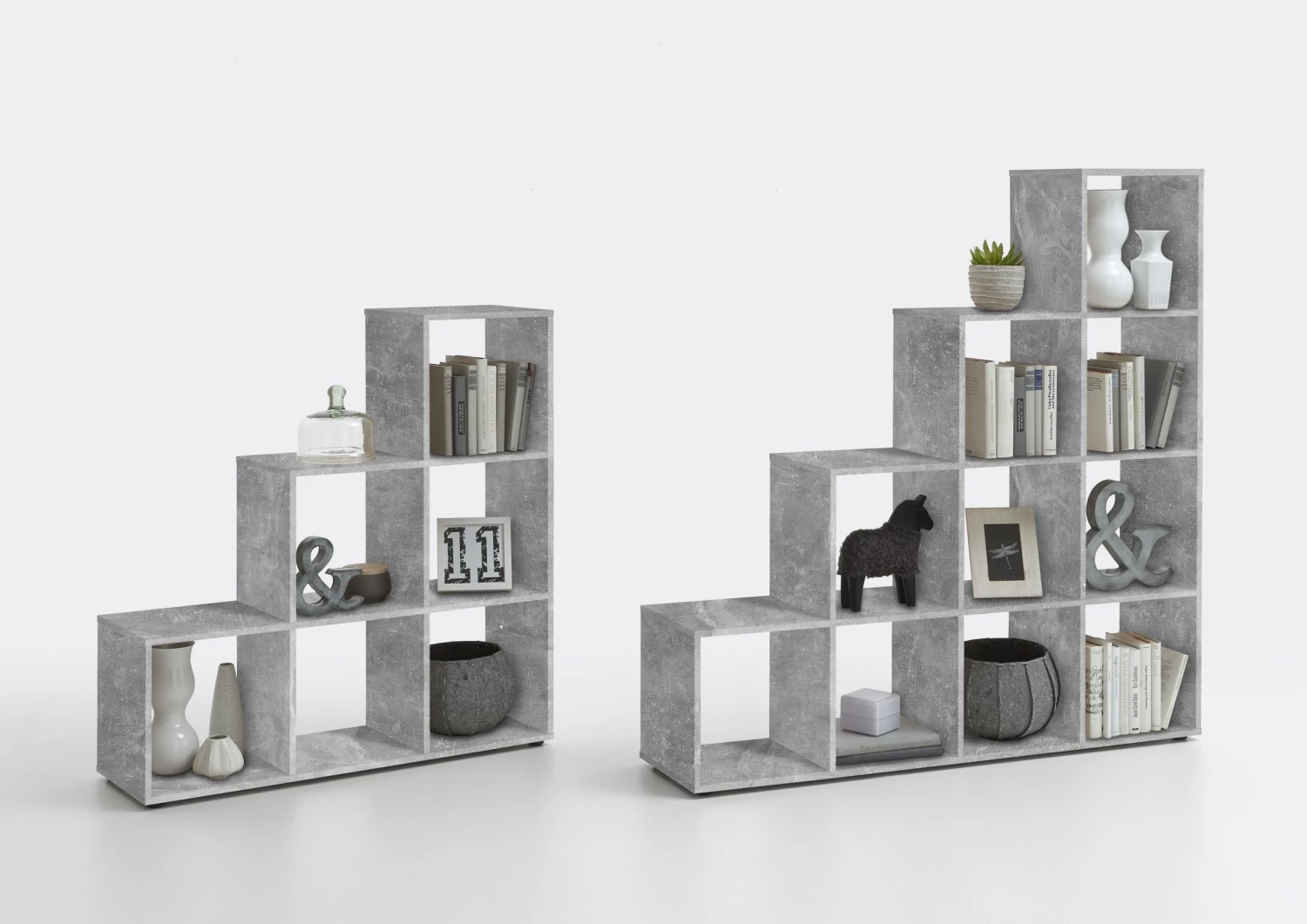 De praktische wandkast Mega onderscheidt zich dankzij haar unieke design en wordt ongetwijfeld de blikvanger van jouw interieur. Deze kast met betonlook bestaat uit 6 open opbergvakken waarin je jouw mooiste spullen kan tentoonstellen. Met enkele kleurrijke mandjes creëer je bovendien een speels effect én extra opbergruimte voor kleinere spullen!