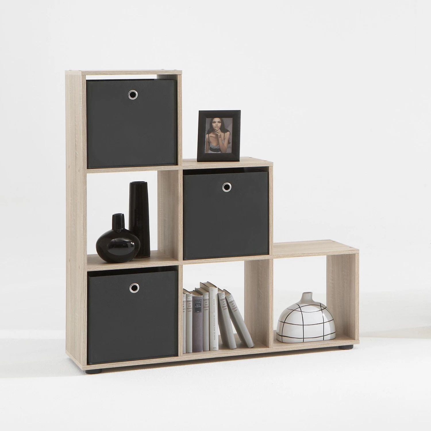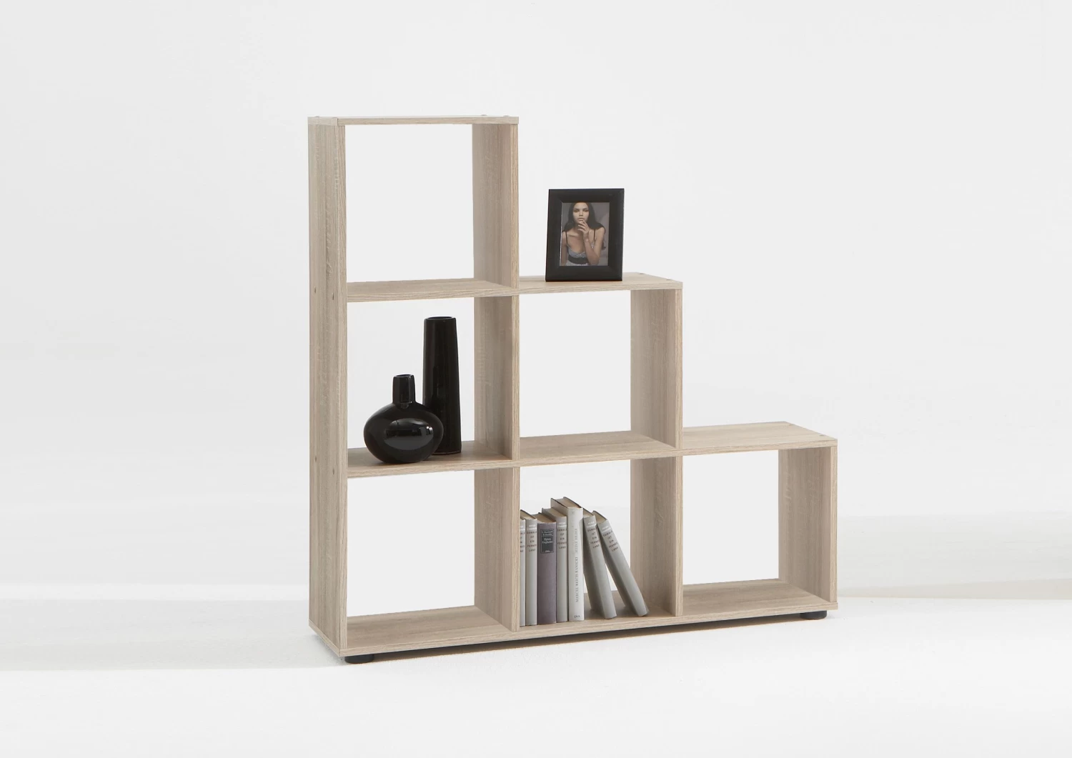 De praktische wandkast Mega onderscheidt zich dankzij haar unieke design van alle andere en wordt ongetwijfeld de blikvanger van jouw interieur. Deze kast met bruine eikenhouten look bestaat uit 6 open opbergvakken waarin je jouw mooiste spullen kan tentoonstellen. Met enkele kleurrijke mandjes creëer je bovendien een speels effect én extra opbergruimte voor kleinere spullen!