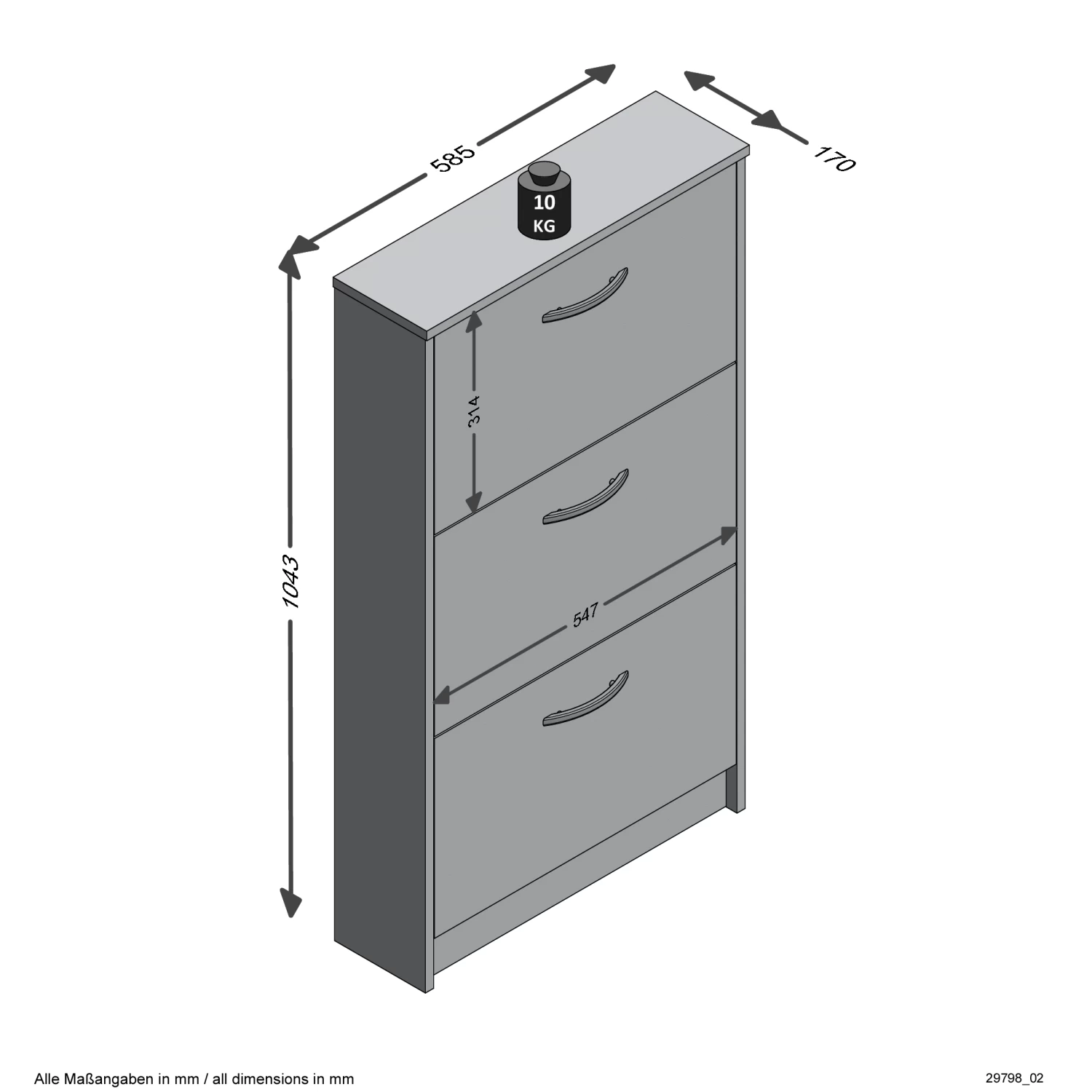 Deze schoenenkast met eikenhouten look is gemaakt van spaanplaat en bestaat ook in andere kleuren. Je ontdekt ze allemaal op onze site!