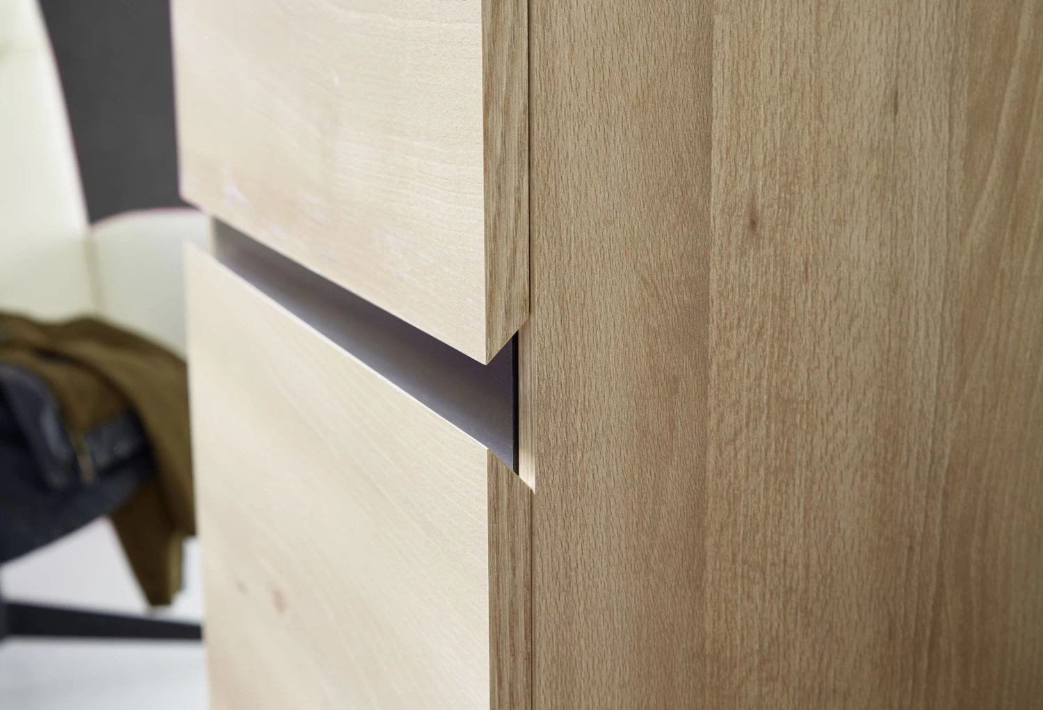 De Lissandro-collectie voor je inkomhal is de ideale gids om je gasten in huis te ontvangen. De stijlvolle en moderne uitstraling van het beukdecor in combinatie met de accenten in antraciet maken van deze garderobekast een absolute parel. Het twee meter hoge meubel in spaanplaat is uitgerust met een uittrekbare kledingstang en vier legplanken, waarvan er drie verstelbaar zijn. De deur is bovendien voorzien van een soft-close demping.Â