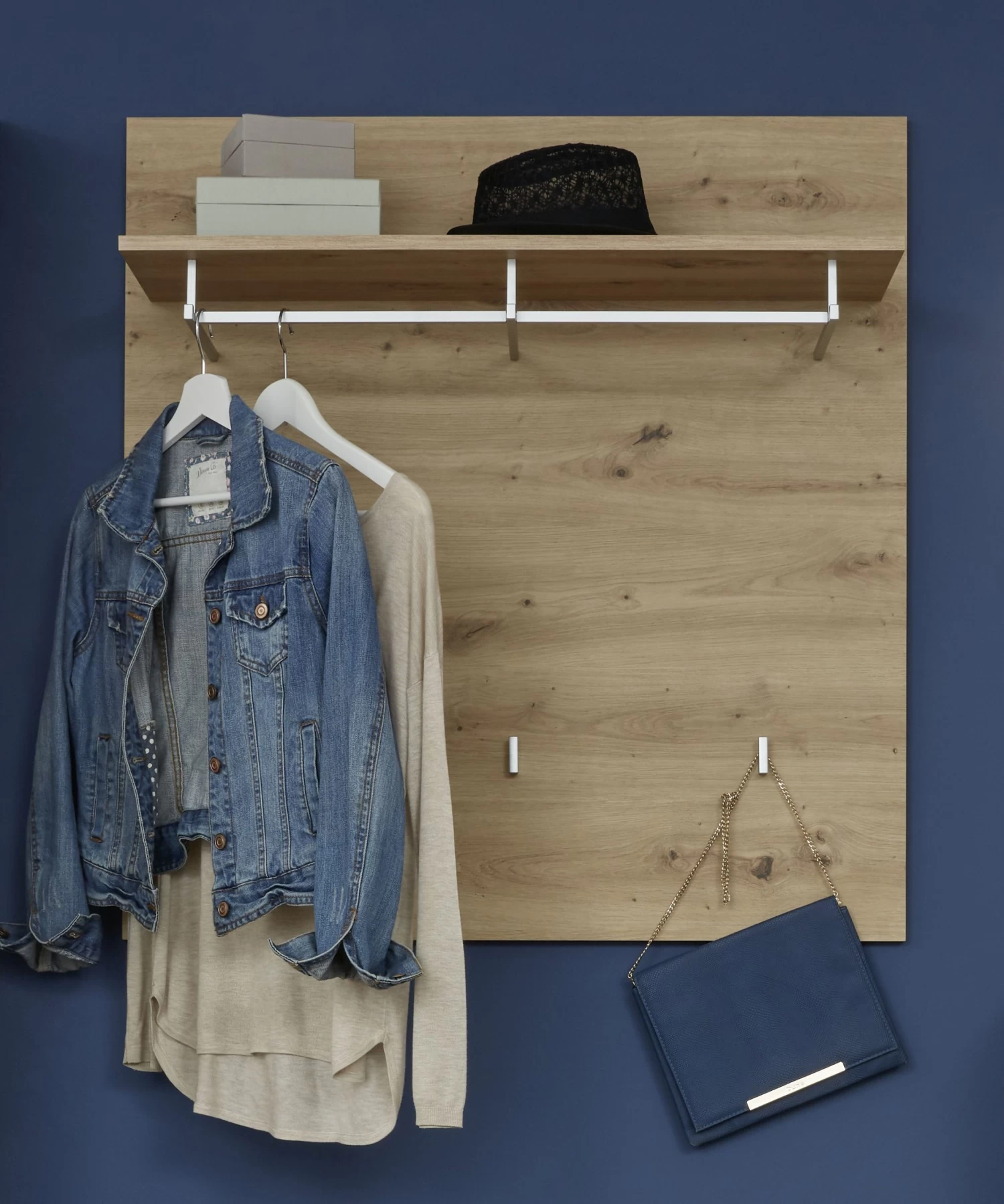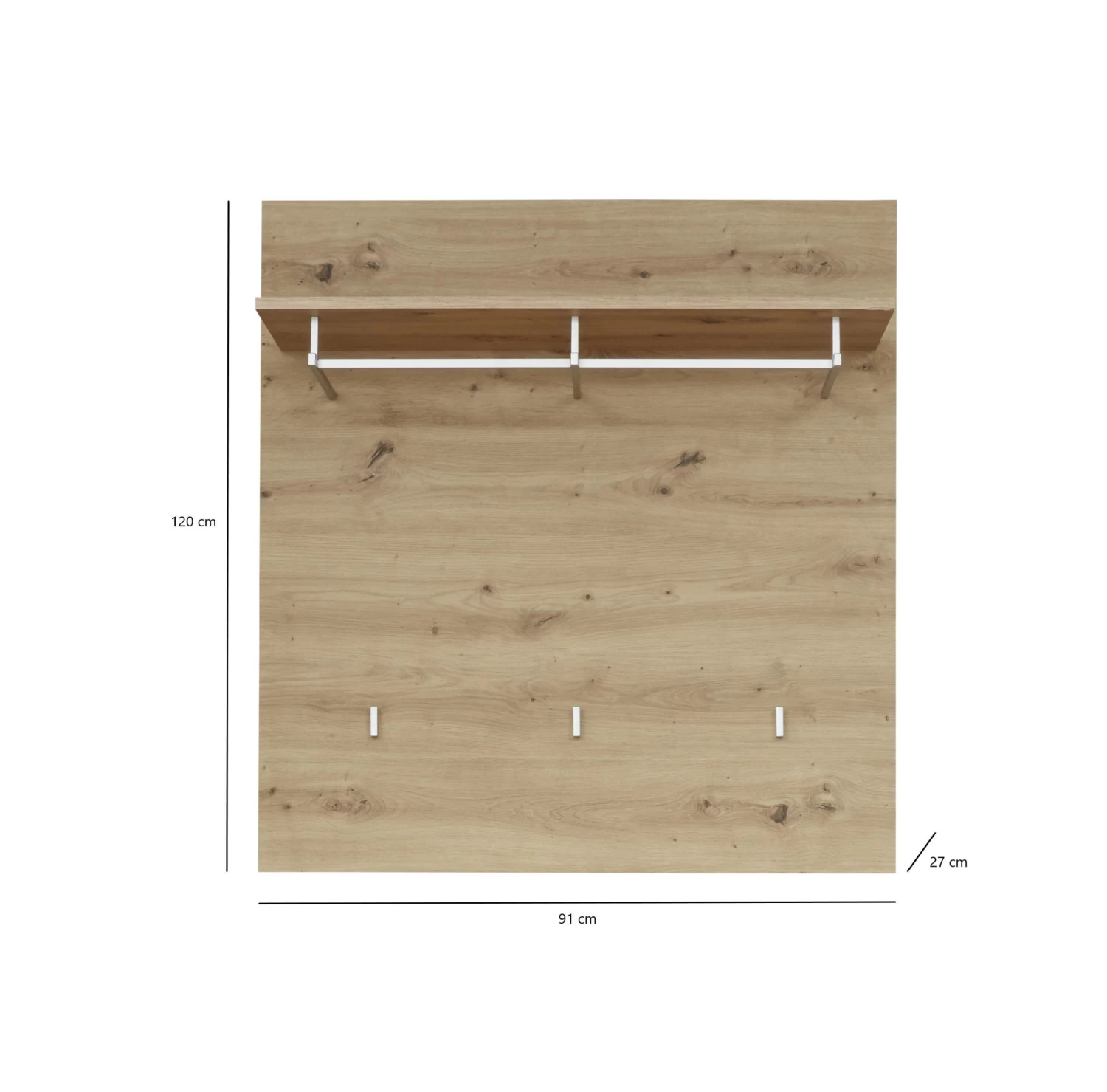 Met afmetingen van 91 x 27 x 96 cm is dit garderobepaneel de perfecte maat voor elke kamer. Het kan eenvoudig in slechts 25 minuten in elkaar worden gezet, waardoor het proces snel en probleemloos verloopt. Het paneel is voorzien van een legplank, een kledingroede en drie jashaken, waardoor er voldoende opbergruimte is voor je kleding en accessoires.