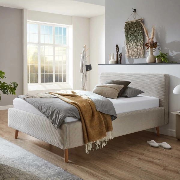 Gestoffeerd Bed Madras 140x200cm Ribfluweel – Beige