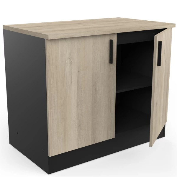 Gootsteenonderkast Romanie 100 Cm-2 Draaideuren En 1 Legplank-Kronberg Eik/matzwart