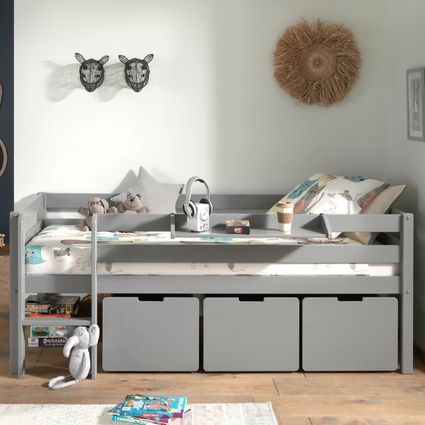 Halfhoogslaper Pip 90×200 Cm Met 3 Lades En 1 Hangplank-grijs