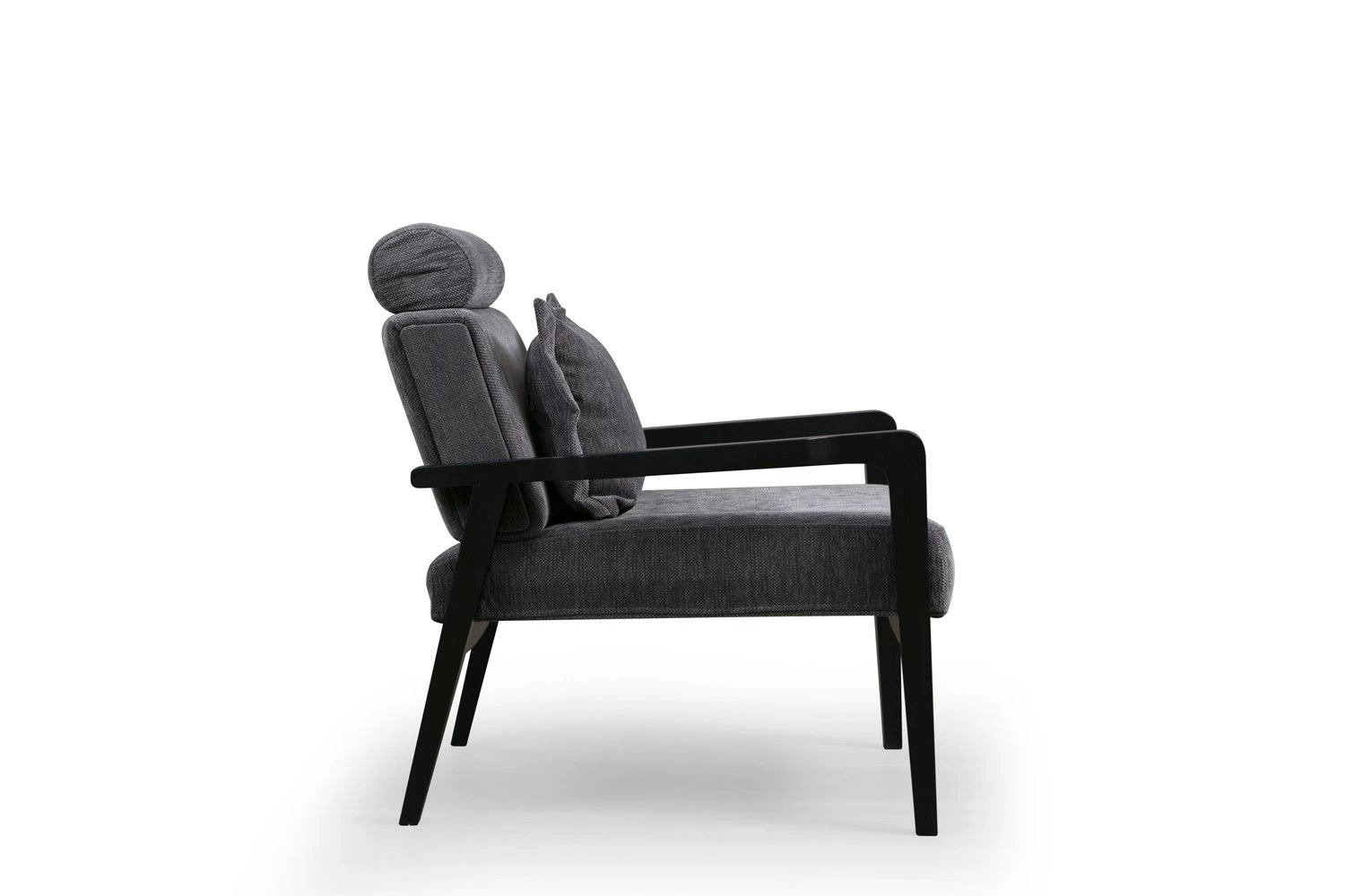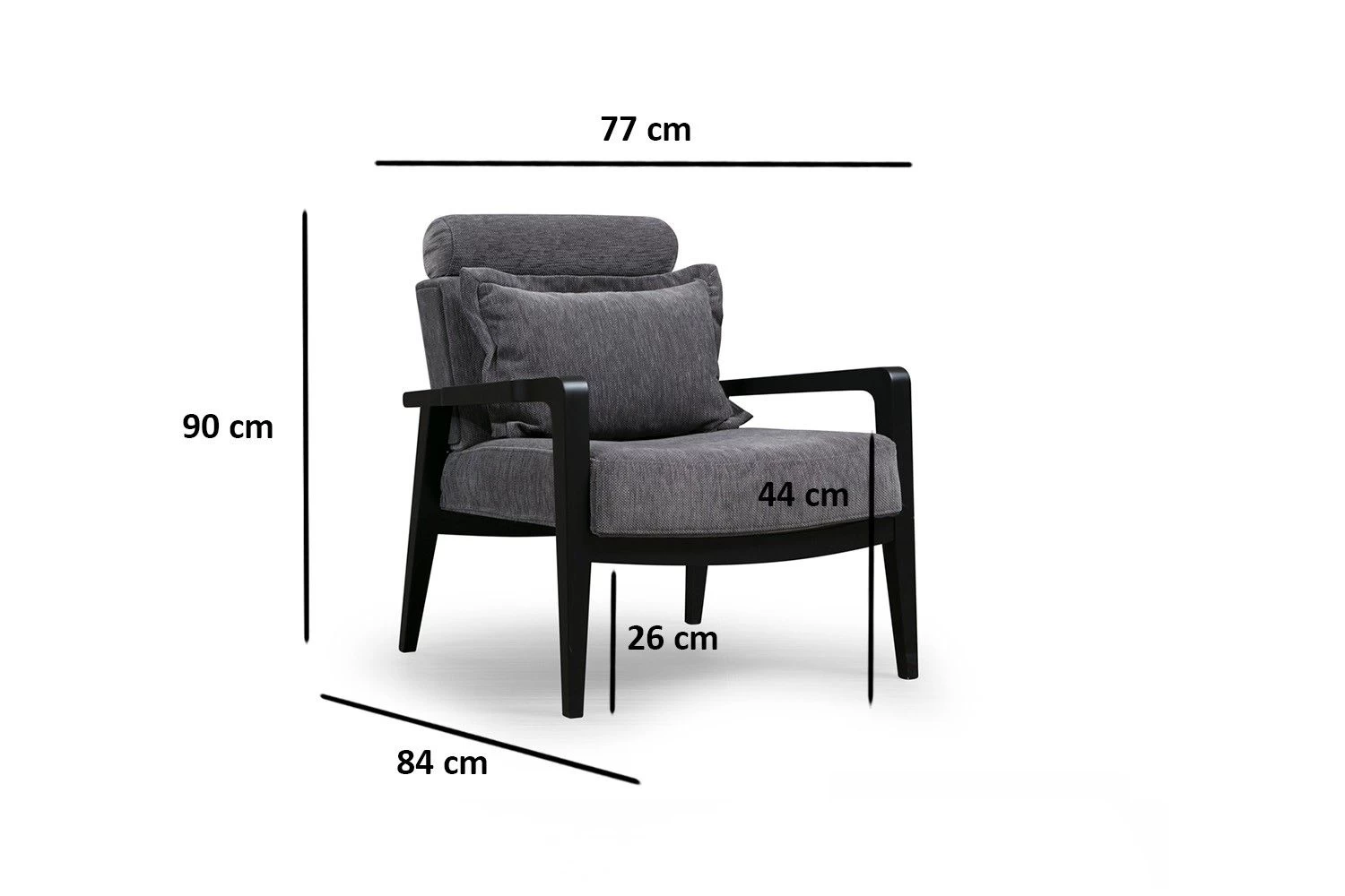 Hilena Wing Chair: Bekleed met 100% polyesterstof, met beukenhouten frame, 28 DNS zacht schuim en zwarte houten poten. Kleur: Grijs