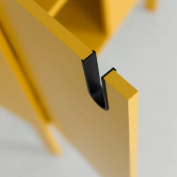 Hoge kast Pop zorgt met zijn trendy gele kleur voor een leuk kleurrijk accent in uw woonkamer. De uitgesneden U-vormige handgreep geeft het meubel een speels karakter. Het meubel is gemaakt uit hoogwaardig gelakt MDF en spaanplaat en bestaat uit 1 draaideur en 2 legplanken. De kast beschikt bovenaan over een open gedeelte waar u uw boeken of andere stijlvolle objecten kunt etaleren.  Al de meubels van de Pop-collectie zijn voorzien van kantelbeveiliging die ervoor zorgt dat het meubel tegen de muur bevestigt kan worden zodat deze niet omvalt. Bekijk gerust onze website voor nog meer van de Pop-collectie.Â