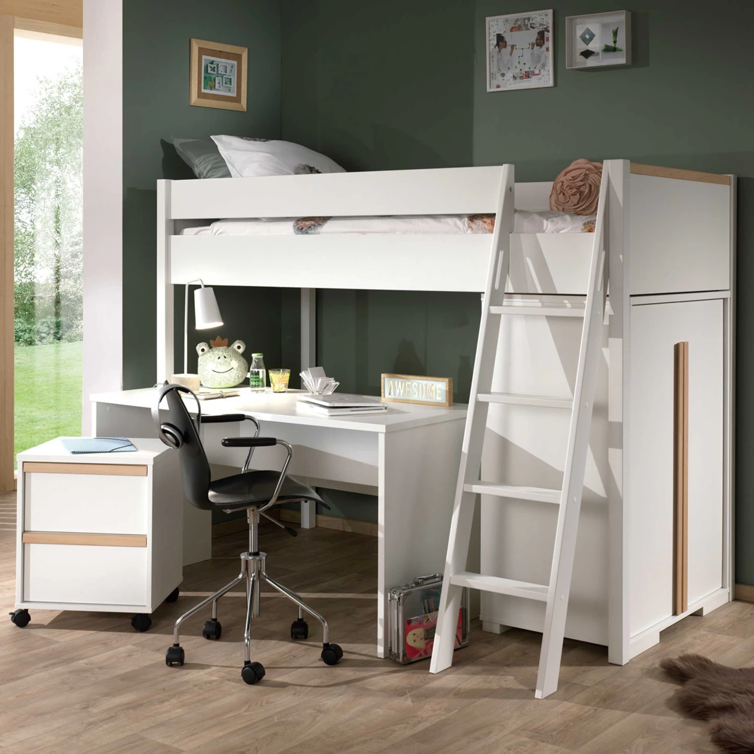 Hoogslaper London 90×200 Met Kast, Bureau En Ladeblok – Wit