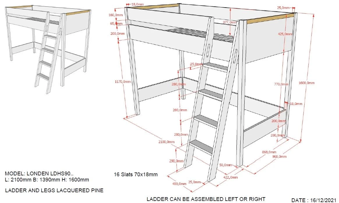 Hoogslapers zijn de ideale manier om alle ruimte in de kinderkamer te benutten. Deze stijlvolle, witte hoogslaper uit de London-reeks van het merk Vipack is gemaakt van hoogwaardig spaanplaat en is erg stevig. De details in massief beukenhout zorgen voor een warme toets. Dit bed is voorzien van een bijhorende opbergkast met 2 legplanken. Zo heb je voldoende plaats voor kleren, speelgoed, boeken enzovoort… De ruimte onder het bed wordt de perfecte studieruimte dankzij het bijhorende bureau met ladeblok. Ontdek ook de andere producten uit de London-reeks.