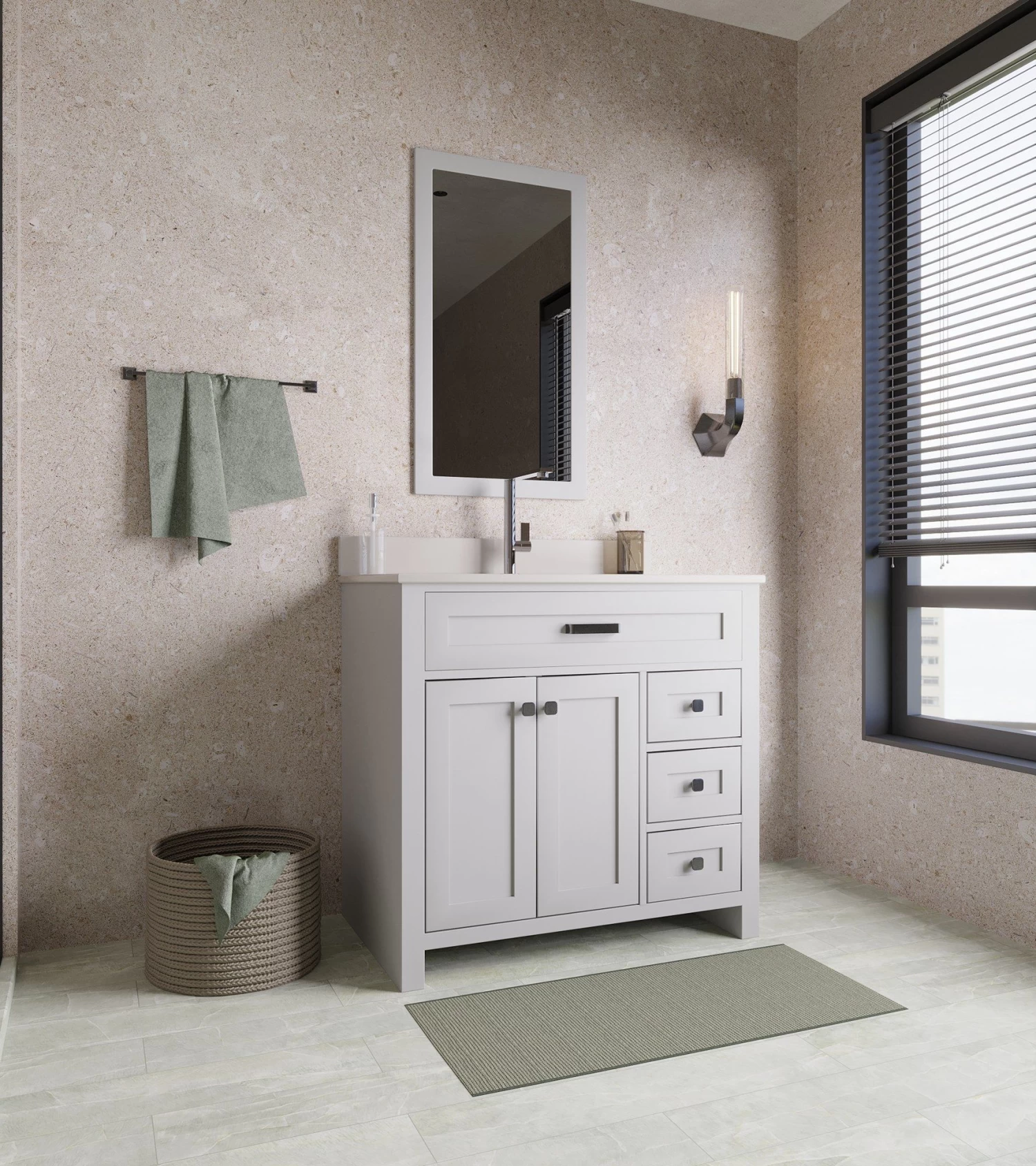 Maak kennis met de Jussara badkamermeubelset, een perfecte aanvulling voor elke moderne badkamer. Deze prachtig ontworpen set bestaat uit twee essentiële stukken – een badmeubel en een flotale spiegel. Gemaakt met uiterste precisie en aandacht voor detail, is de Jussara set speciaal samengesteld om de functionaliteit en esthetiek van je badkamer te verbeteren. Een van de opvallende kenmerken van deze meubelset is het gebruik van 100% gelakt MDF (massief hout) met een dikte van 18 mm. Deze materiaalkeuze zorgt ervoor dat de meubels zowel duurzaam als sterk zijn. Gemaakt om de tand des tijds te doorstaan, kun je erop vertrouwen dat de Jussara set je jarenlang van dienst zal zijn. Het aanrechtblad van het badmeubel is gemaakt van 100% wit kwarts, aangevuld met een porseleinen onderbouwspoelbak. Deze eersteklas combinatie voegt niet alleen een vleugje elegantie toe aan je badkamer, maar biedt ook een oppervlak dat gemakkelijk schoon te maken en te onderhouden is. Zeg vaarwel tegen het gedoe van hardnekkige vlekken en geniet van de schoonheid van een smetteloos aanrechtblad met minimale inspanning.De lade van het Jussara badmeubel is gemaakt van 100% marien hout met een dikte van 12 mm. Deze houtkeuze garandeert een uitstekende kwaliteit en weerstand tegen vocht, waardoor het een ideale optie is voor badkamermeubels. Met de Jussara set kun je al je badkamerbenodigdheden handig en veilig opbergen, terwijl je er zeker van bent dat ze in onberispelijke staat blijven.De Jussara badkamermeubelset versterkt de algehele esthetiek van de set met een flotale spiegel. Met een breedte van 55 cm en een hoogte van 80 cm dient deze spiegel niet alleen zijn primaire doel, maar voegt hij ook een vleugje verfijning toe aan je badkamerinrichting. Het grijze kleurenpalet van de spiegel past moeiteloos in elk hedendaags ontwerp en creëert een samenhangende en stijlvolle look.Om een vleugje elegantie en functionaliteit toe te voegen, is de Jussara set voorzien van chromen handgrepen. Ontworpen met een moderne rand, bieden deze handgrepen niet alleen een comfortabele grip, maar dienen ze ook als een visueel accent, waardoor de algehele aantrekkingskracht van de meubelset wordt verhoogd.De afmetingen van het Jussara badmeubel zijn een breedte van 90 cm, een hoogte van 22 cm en een diepte van 56 cm. Deze afmetingen zorgen ervoor dat het badmeubel naadloos in de meeste badkamers past, zelfs in badkamers met beperkte ruimte. Het compacte ontwerp van het badmeubel maximaliseert de opslagcapaciteit en minimaliseert het vloeroppervlak, wat een praktische oplossing biedt voor kleinere badkamers.Samengevat is de Jussara badkamermeubelset een uitstekende keuze voor