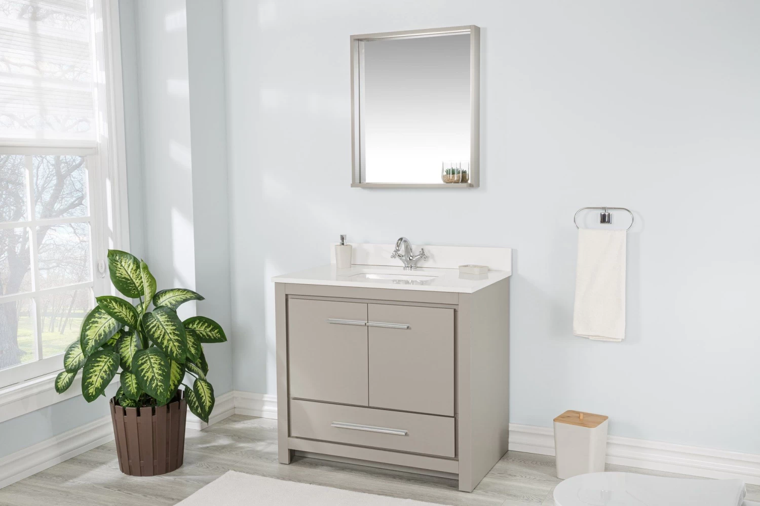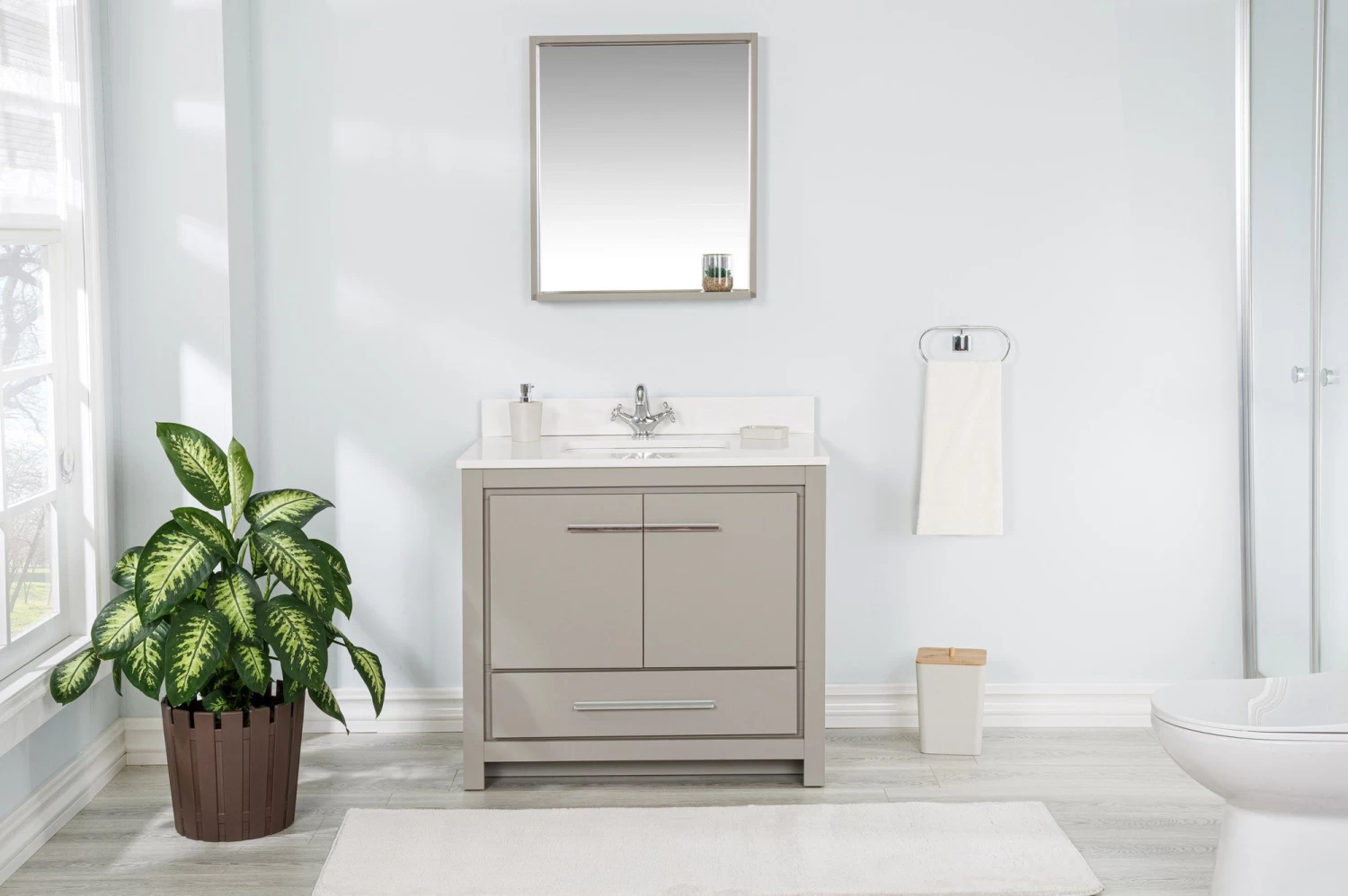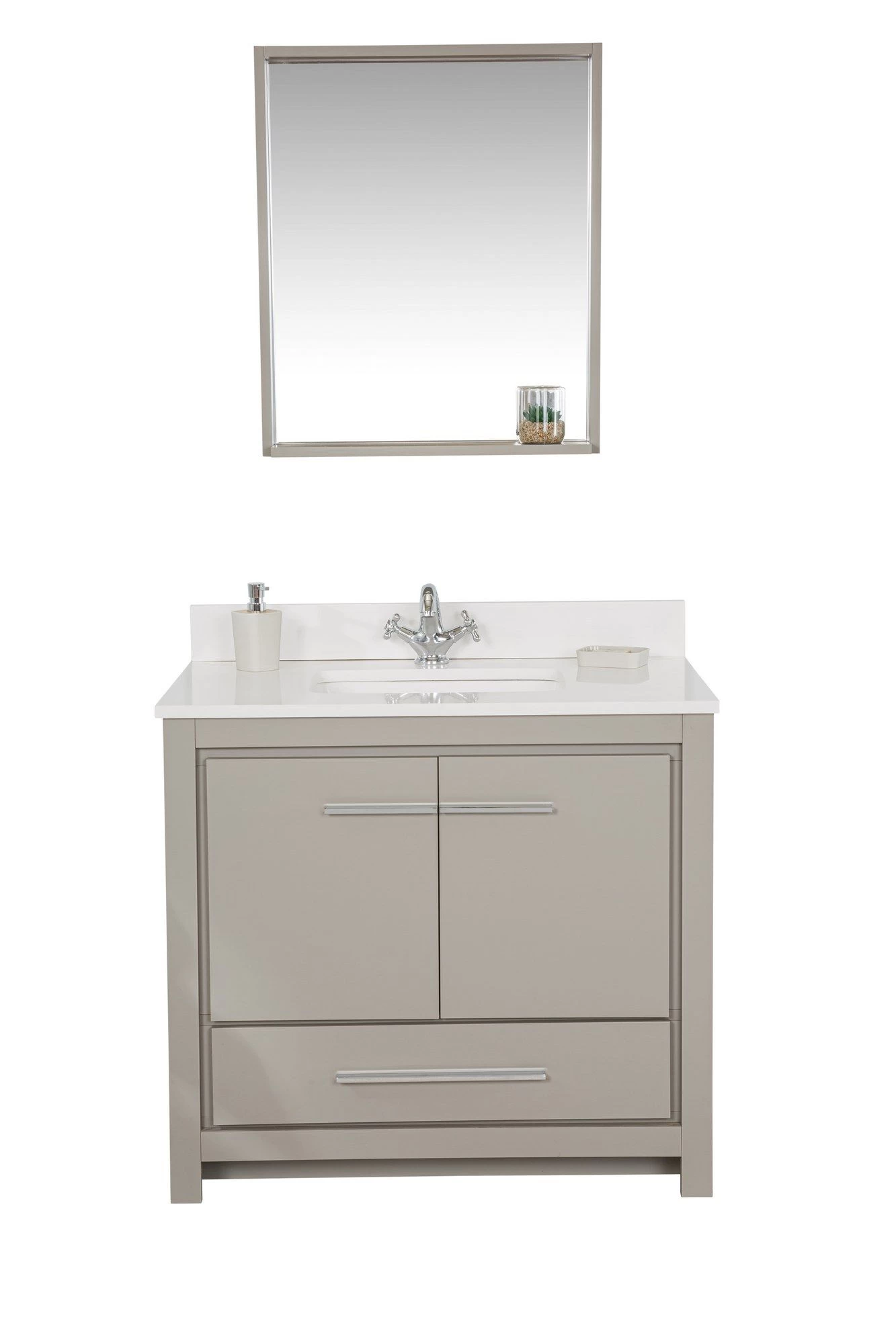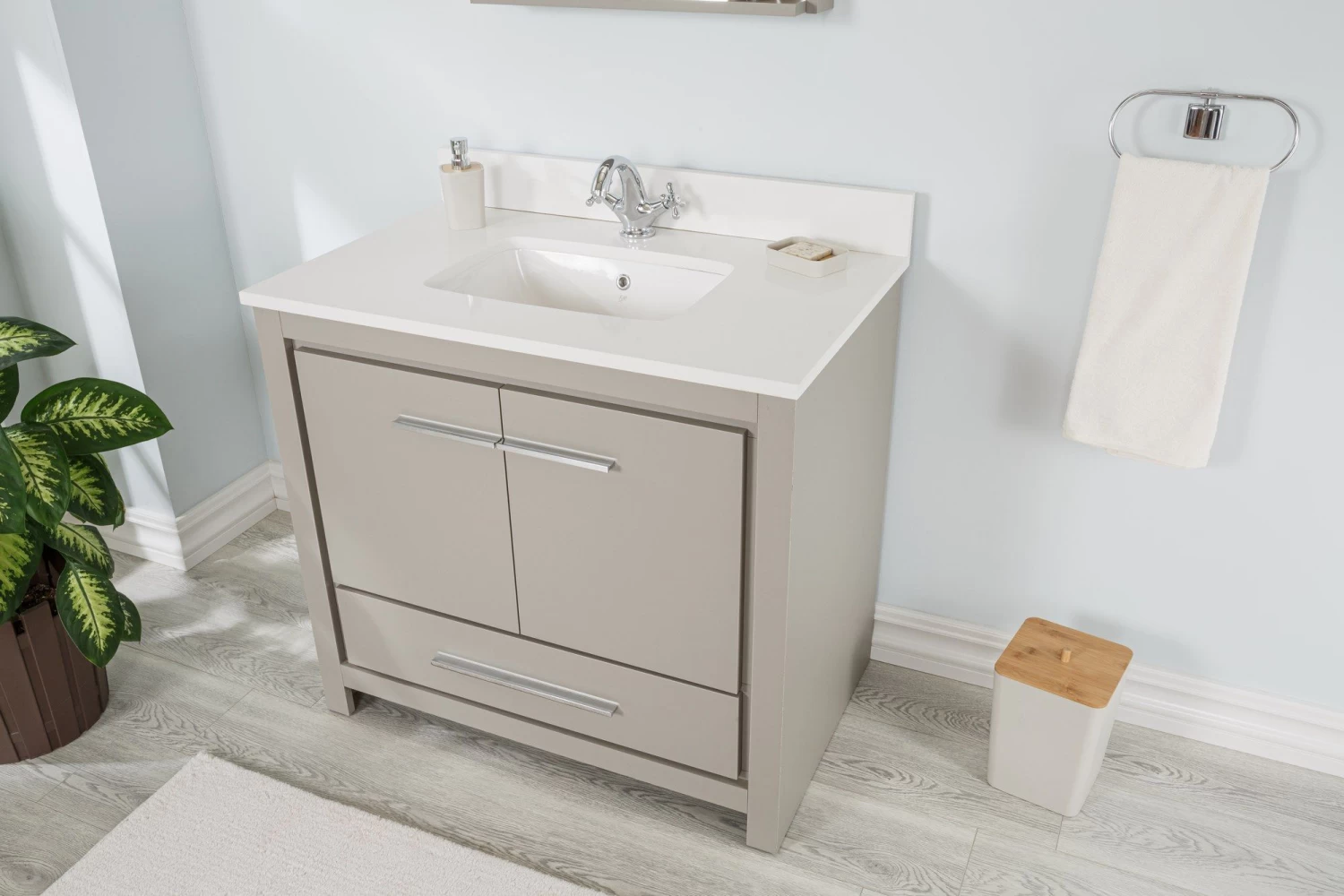 Jussara Badkamermeubelset | MDF Gelakt | Aanrechtblad Wit Kwarts | Grijze Kleur