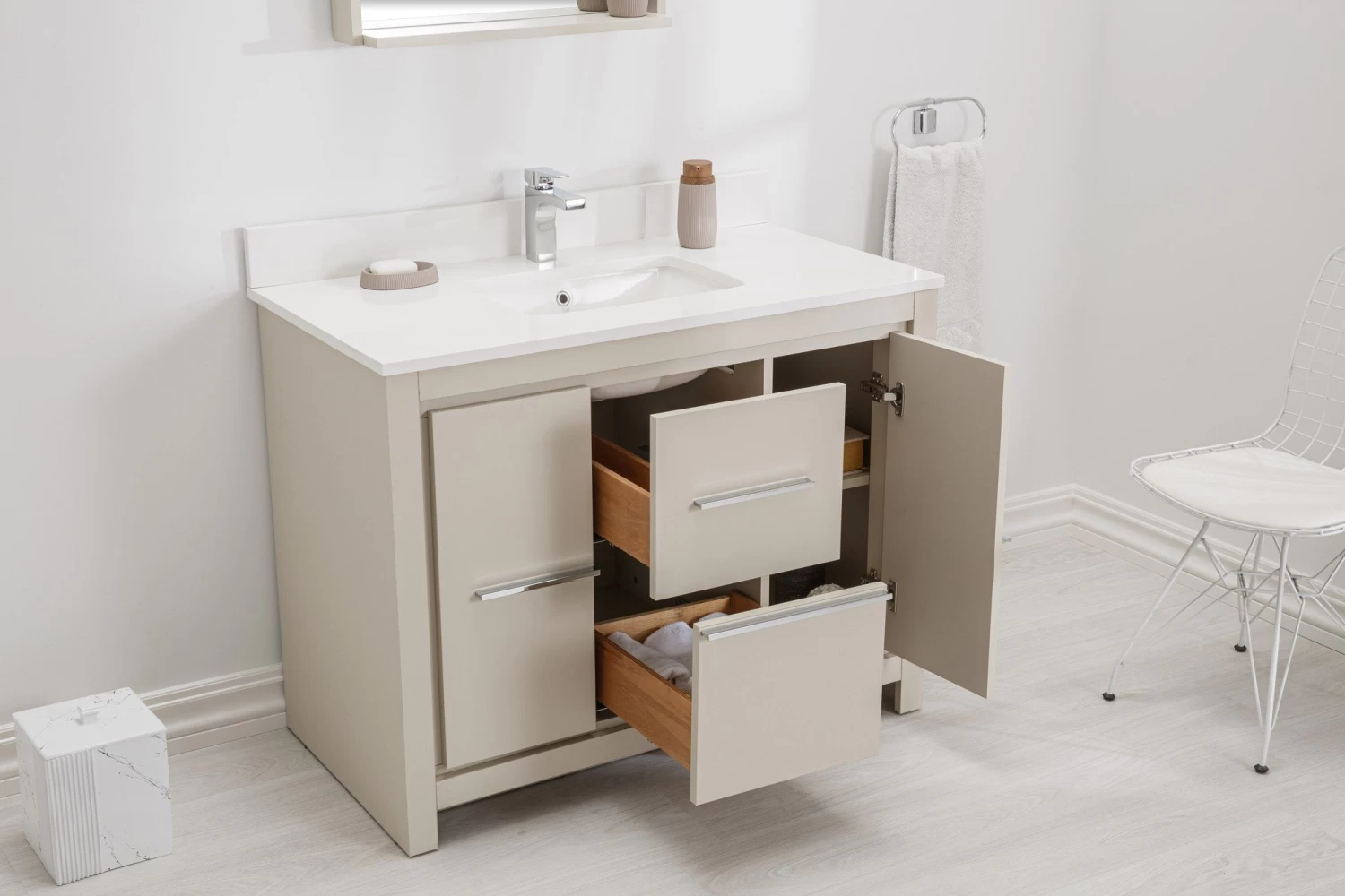 Jussara Badkamermeubelset | MDF Gelakt | Blad Van Kwarts En Wastafel Van Porselein | Beige