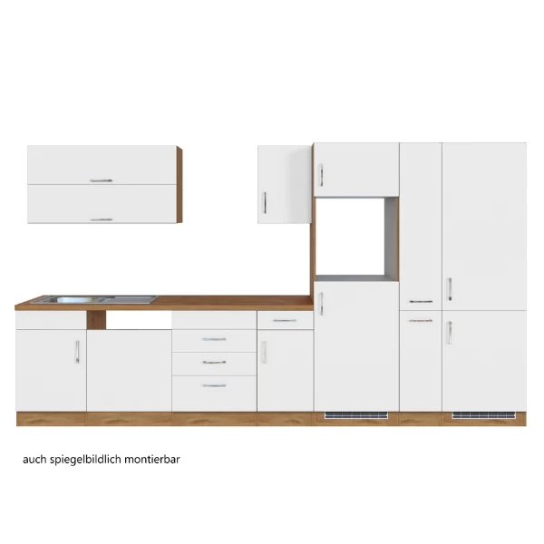 Keukenblok Sorrella 360cm Met Ruimte Voor Vaatwas, Oven, Koelkast En Diepvries – Wit/eik
