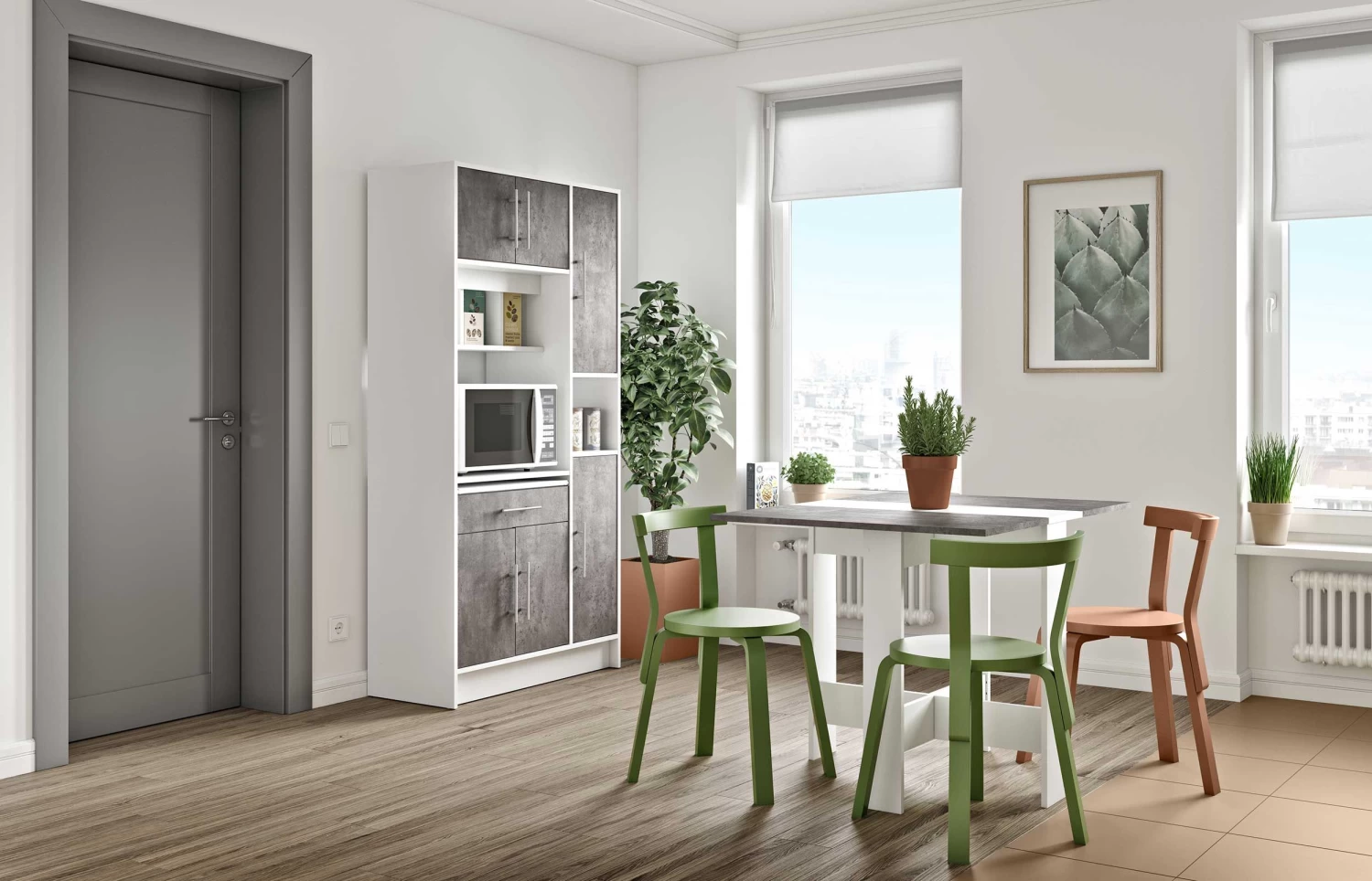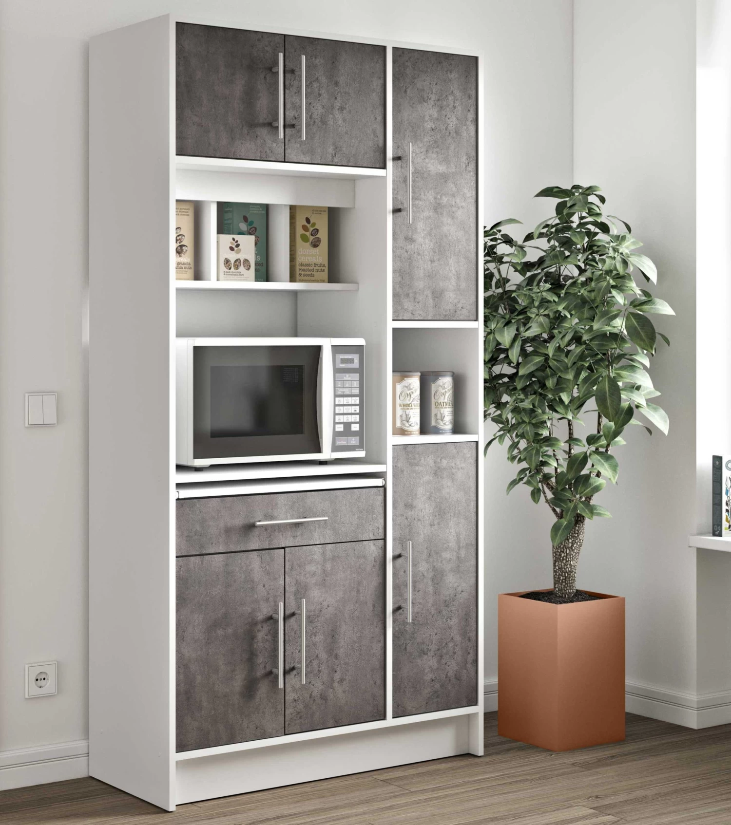 Deze praktische keukenkast met talloze opbergmogelijkheden biedt je de mogelijkheid om naast je microgolfoven heel wat andere keukenspullen op te bergen. Je kan de Liana-kast zelfs gebruiken als voorraadkast.