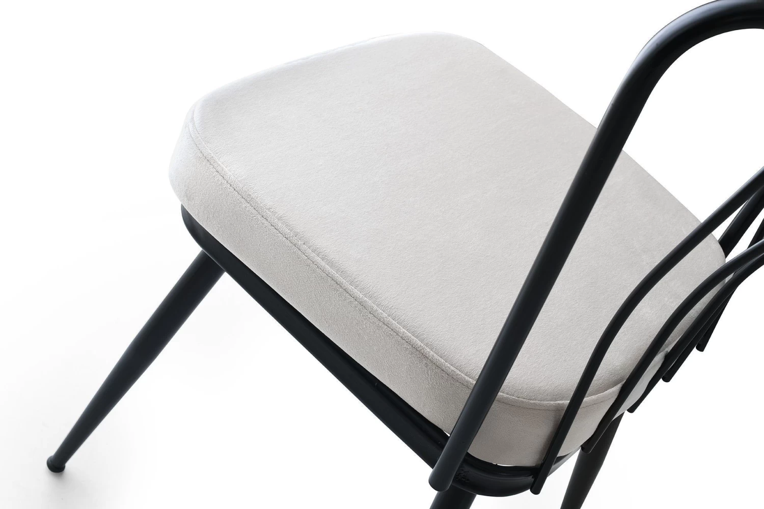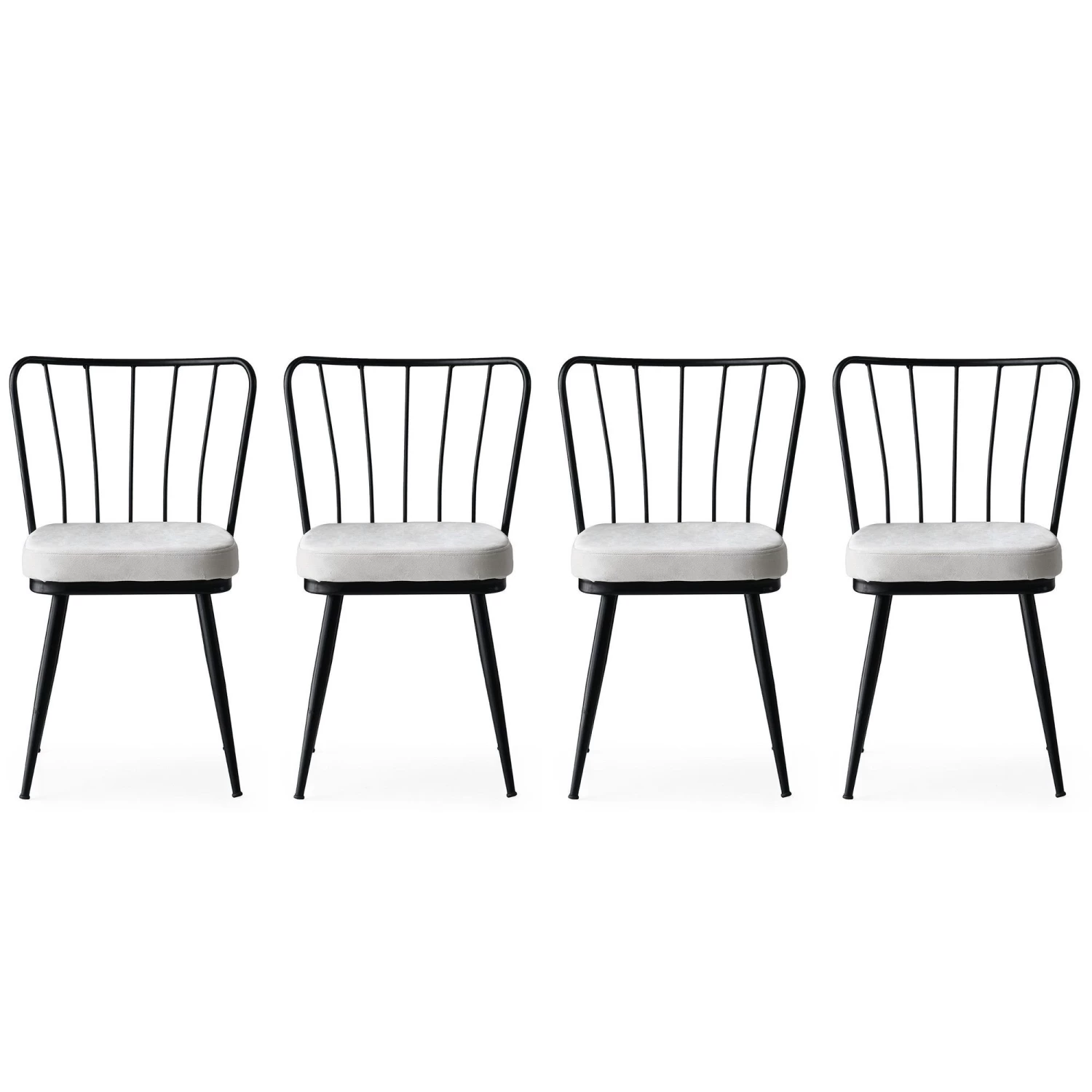 Een moderne en stijlvolle stoelenset (4 stuks) met een duurzaam metalen frame. De fluwelen stoffen zittingen en metalen ruggen bieden zowel comfort als stijl. Afmetingen: B43 x H82 x D42 cm. Zithoogte: 50 cm. Maximaal gewicht: 175 kg. Verkrijgbaar in zwart