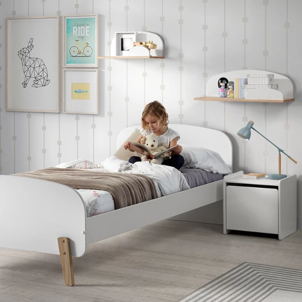 Deze kinderkamer Kiddy van het kwalitatieve Belgische merk Vipack zal ongetwijfeld een van je favorieten worden! De kamer bestaat uit een kinderbed, een nachttafel en 2 wandplankjes in verschillende formaten. Deze meubelen zijn wit en zorgen voor een rustgevende sfeer in de kinderkamer. Je zal versteld staan van de uitstekende kwaliteit van deze kinderkamer Kiddy!