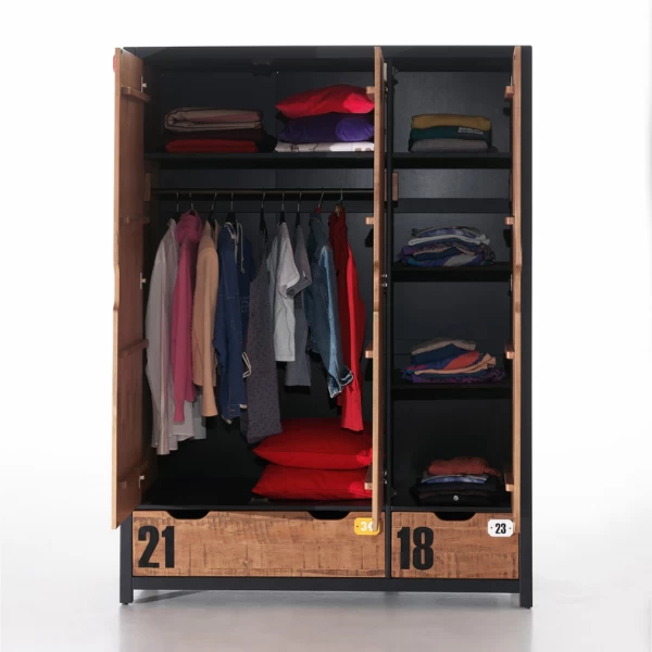 Maak kennis met de perfecte kinderkamer voor jongens die het graag net iets stoerder en steviger zien. Je zoon zal zich helemaal thuis voelen in deze mooie jongenskamer! Kinderkamer Alex bestaat uit een nachttafel 50x45x45 cm, bed 90×200 cm (matras en lattenbodem 90×200 cm niet inbegrepen), bedlade 90×190 cm (matras 90×190 niet inbegrepen), bureau 130x60x75 cm, 3-deurs kast 148x55x200 cm en boekenkast 80x40x200 cm. De kamer is gemaakt uit MDF en massief dennenhout.