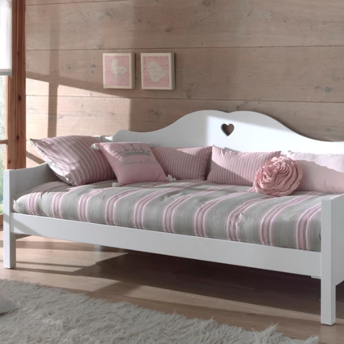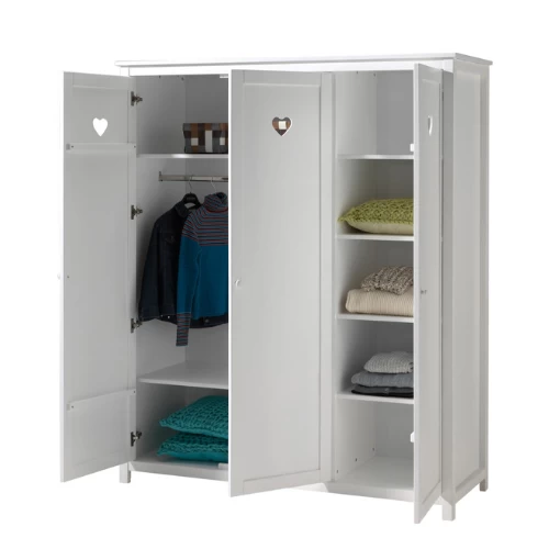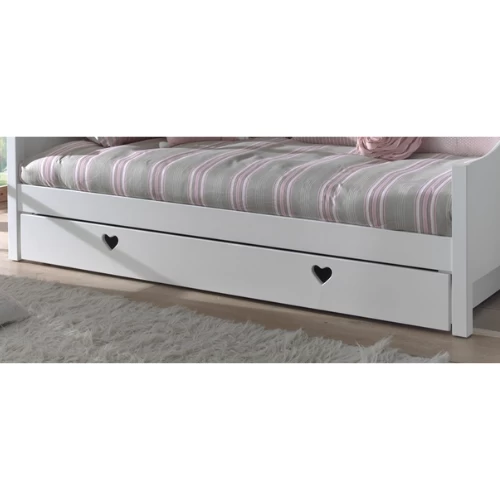 Laat je verleiden door deze lieflijke meisjeskamer Amori, een creatie van het gespecialiseerde merk Vipack, waar je dochter zich zonder twijfel helemaal thuis zal voelen. De schattige hartjes voorzien de kamer van een romantische finishing touch! Kinderkamer Amori bestaat uit een kajuitbed 90×200 cm (lattenbodem van 90×200 cm niet inbegrepen), een bedlade 90×200 cm een nachttafel 45x40x55 cm, 3-deurs kast 159x57x191 cm en bureau 130x60x85 cm . Matras van 90×200 cm voor bed en bedlade niet inbegrepen.