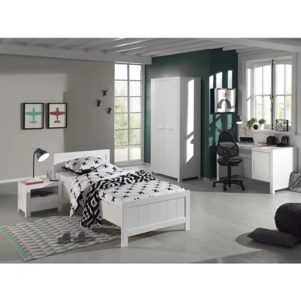 Kinderkamer Erik is gemaakt uit witgelakt massief dennenhout en MDF.