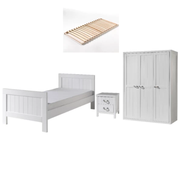 Breng het zeegevoel tot leven in de kinderkamer met deze originele collectie Lewis, vervaardigd in MDF door het merk Vipack. De verticale groeven en de handgrepen van touw geven een aparte touch aan de meubelen. Deze Lewis-combinatie bestaat uit een bed 90x200cm met lattenbodem (matras van 90×200 cm niet inbegrepen), een nachttafel 50x46x56 cm, een 3 deurs kleerkast 146x59x200 cm.